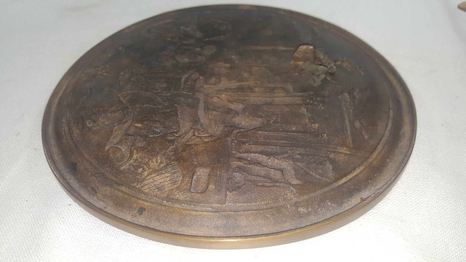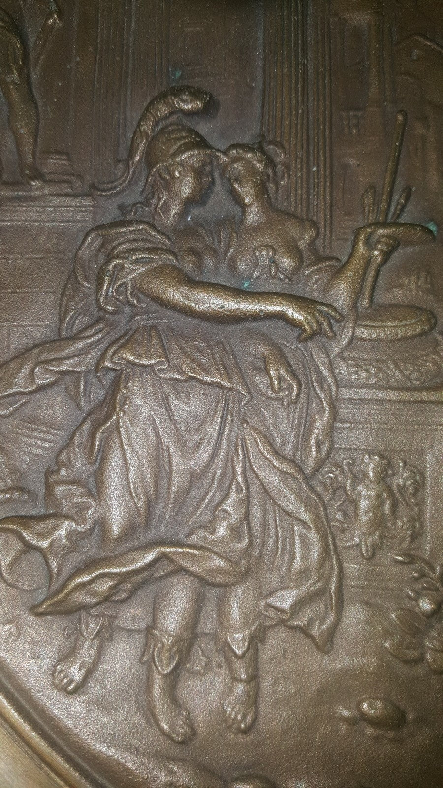 10" Solid Cast Bronze Plaque Plate Charger Roman Greek c 1800's 4.5 lbs
