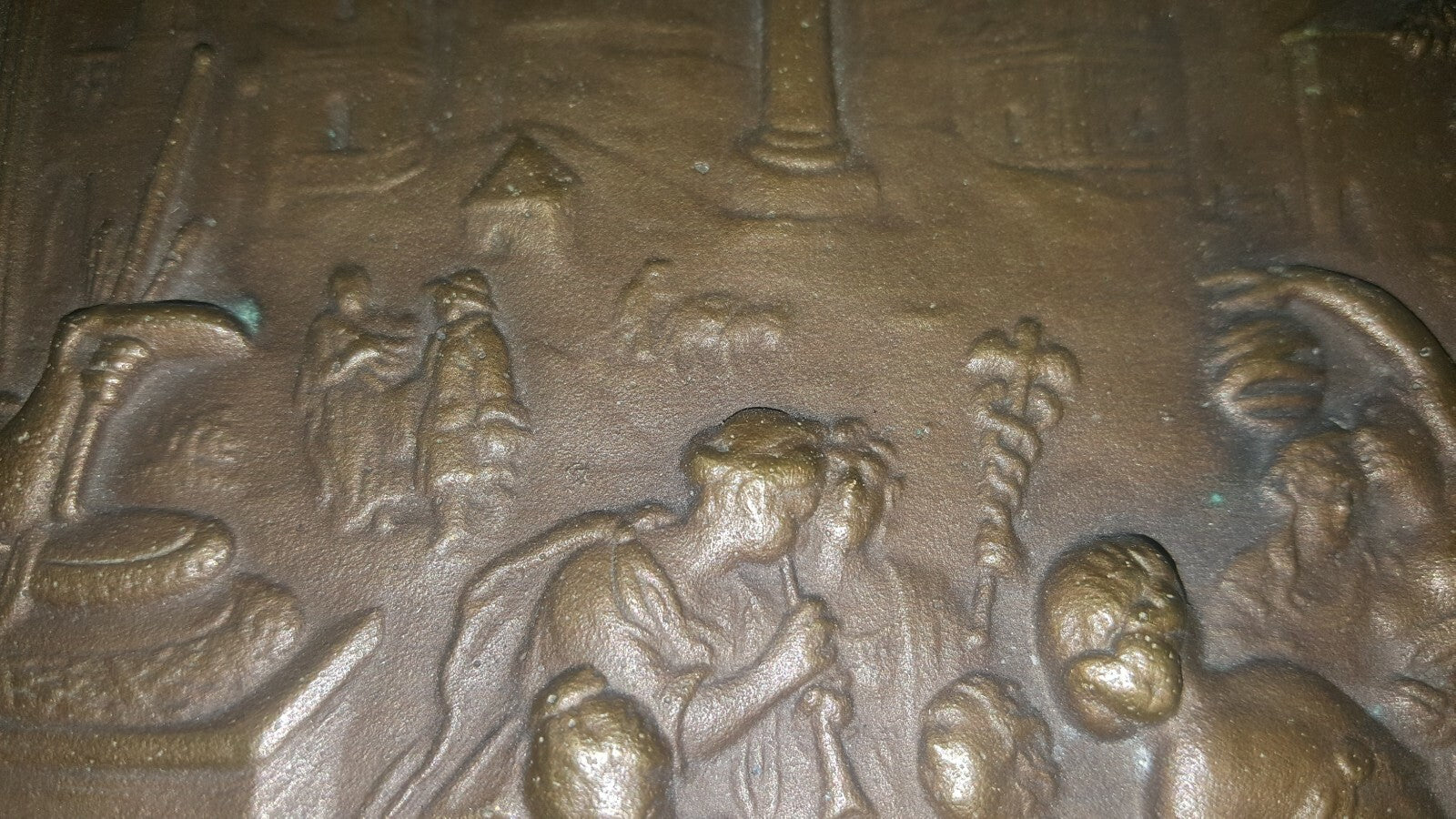 Offered for sale is a 10" solid cast bronze plaque depicting a Roman/Greek ancient scene.