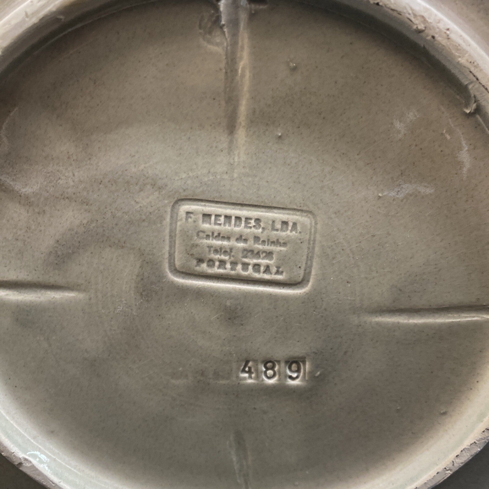 This antique collector plate from Portugal features a stunning spider crab design, handcrafted from ceramic by F. Mendes in early 20th century.