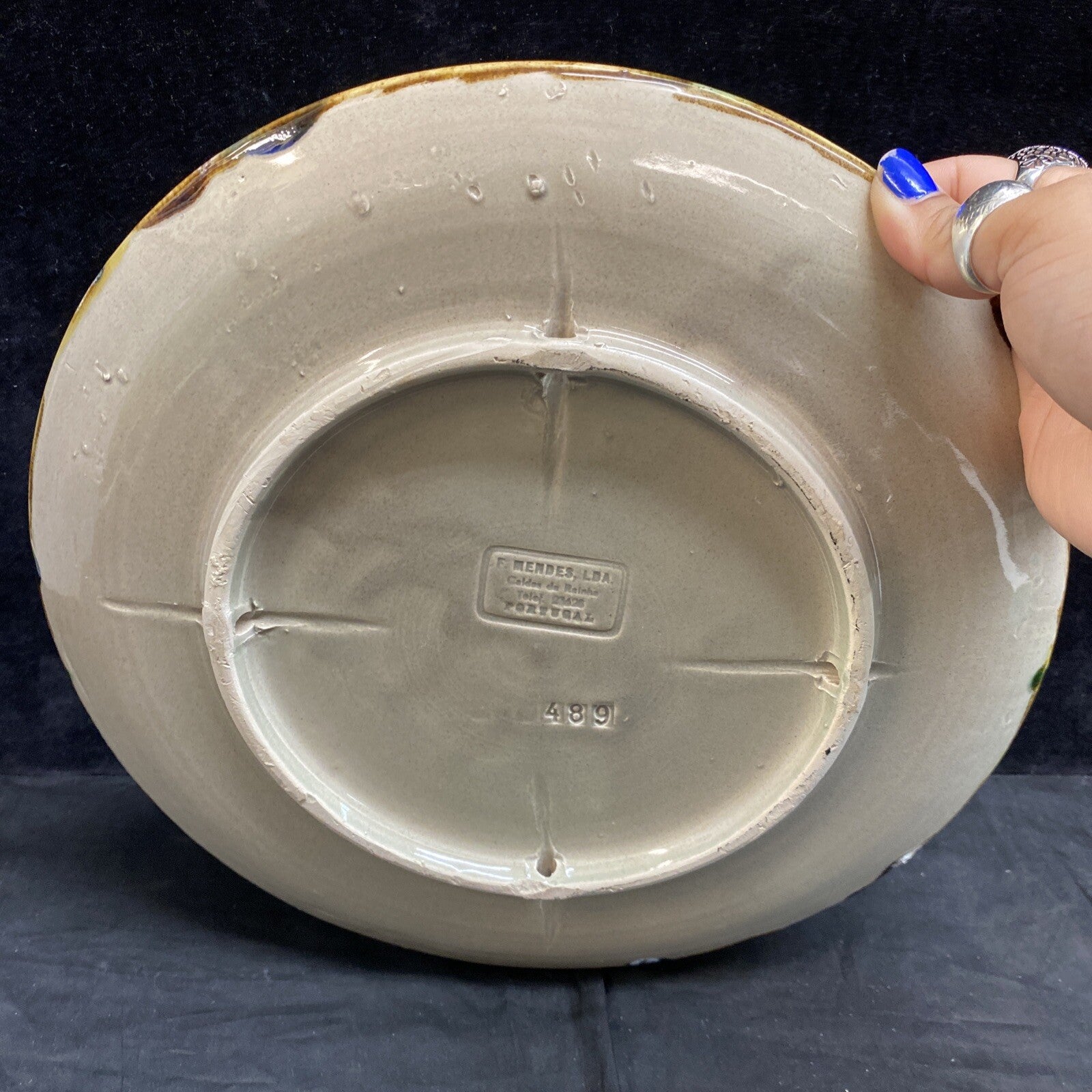 The plate measures 12 inches in diameter and showcases a vibrant multicolored palette that is sure to catch the eye of any collector. With its vintage charm and unique design, this Majolica plate is a wonderful addition to any decorative pottery and glassware collection.