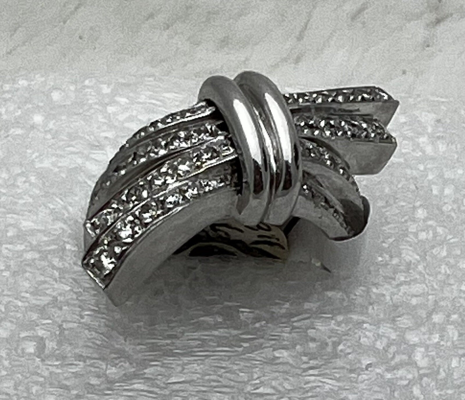 14K White Gold,Diamond By Pass or Bow Tie Ring Size 7, 11.8 grams
