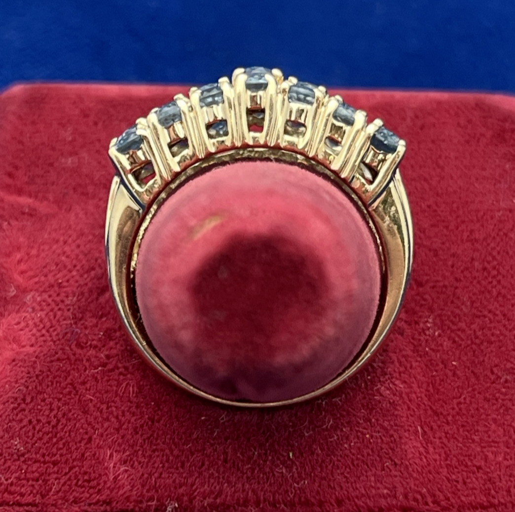 14k Yellow Gold 21 Blue Topaz Ring 5.8 g size 6.75 Thailand CID