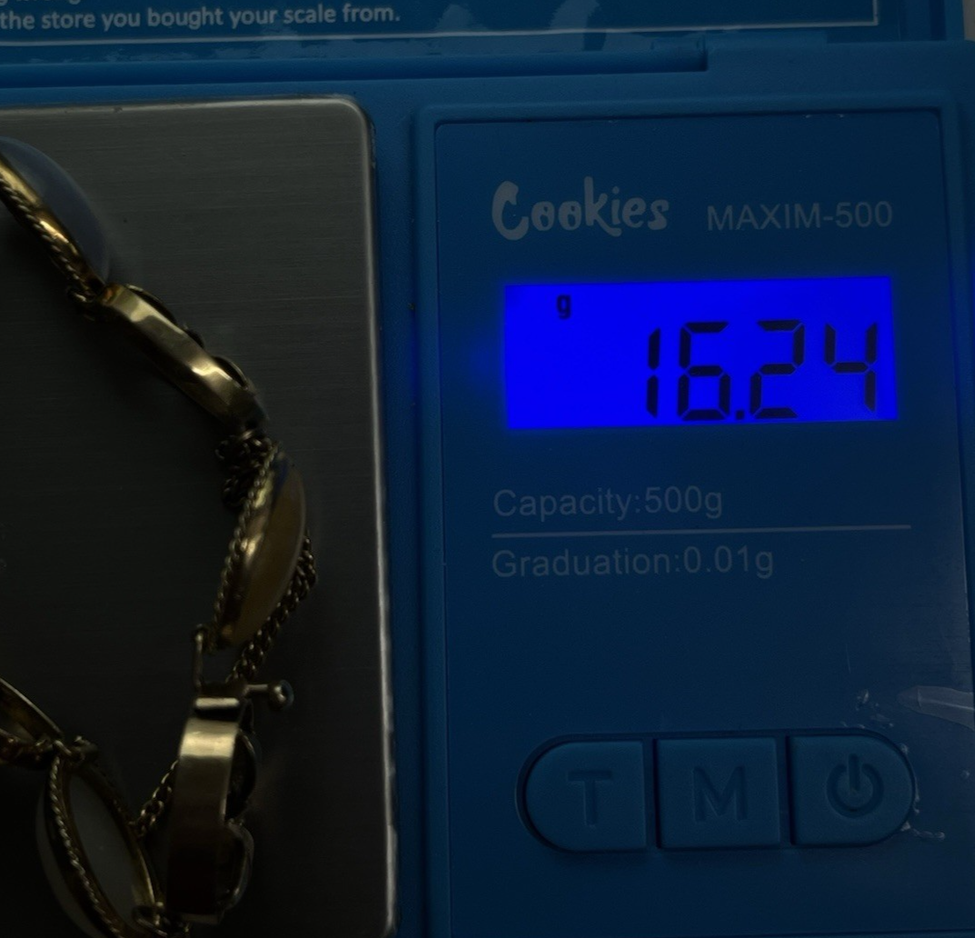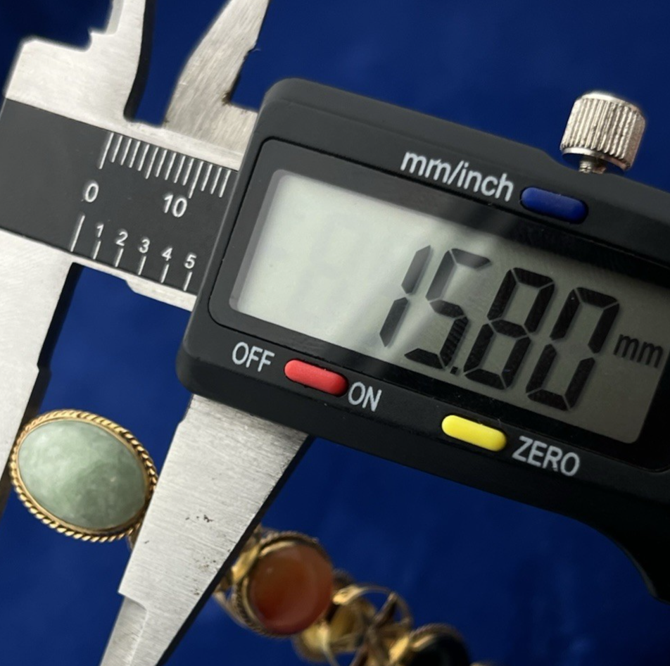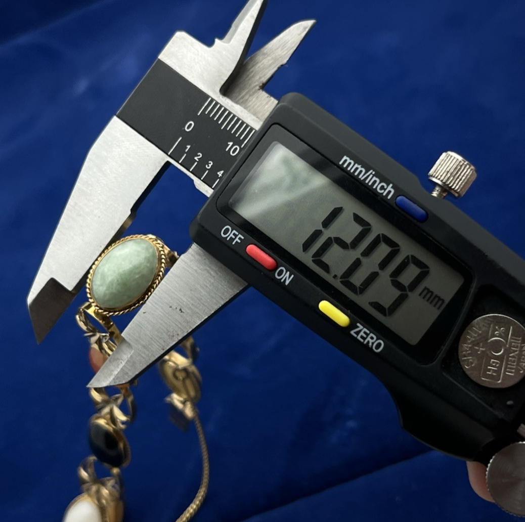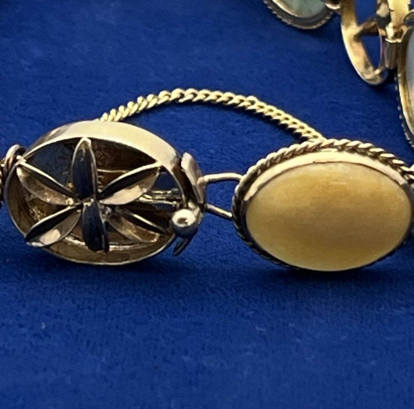 14K Yellow Gold Floral Six Multi Color Oval Cabochon Jade Bracelet 8 in