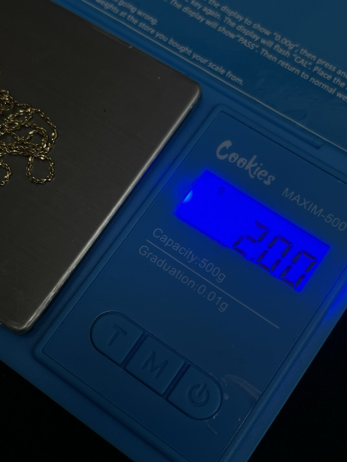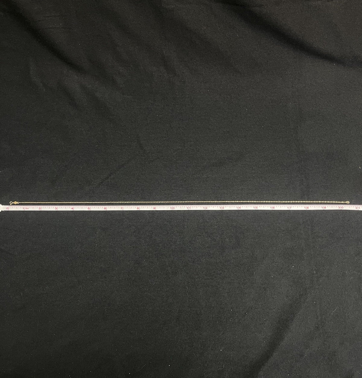14k yellow gold rope 20 in chain 1 mm weighs 2 g marked AT in a circle