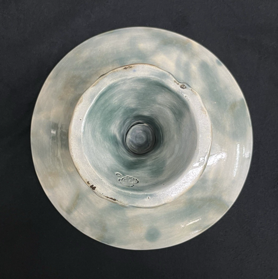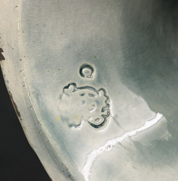 19th Century Griffin, Smith and Hill Etruscan Majolica Maple Pedestal Compote Cake Platter. Circa 1880s. Etruscan Majolica (Griffin, Smith & Hill) The largest and best known of the American majolica manufacturers was Griffen, Smith and Hill of Phoenixville, Pennsylvania. In 1867, John Griffen partnered with W.A.H. Schreiber in establishing a pottery in conjunction with the Philadelphia Iron Works producing fire bricks and Rockingham wares. The business thrived and in 1871 John Smith, an English potter from Stoke-on-Trent joined the firm with Schreiber leaving soon thereafter. Griffins sons Henry and George joined the firm along with potter William Hill. Thereafter, the partnership was known as Griffen, Smith and Hill and by 1879 had begun producing majolica. Following Hills departure in 1880, the company was renamed Griffen, Smith and Company, although and the H in the firms monogram continued to be used and the original name is still used