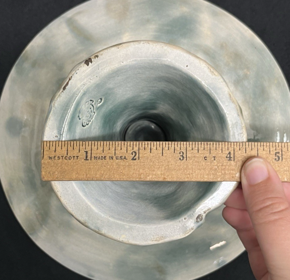 This beautiful cake stand measures 9.5" diameter and 5" tall