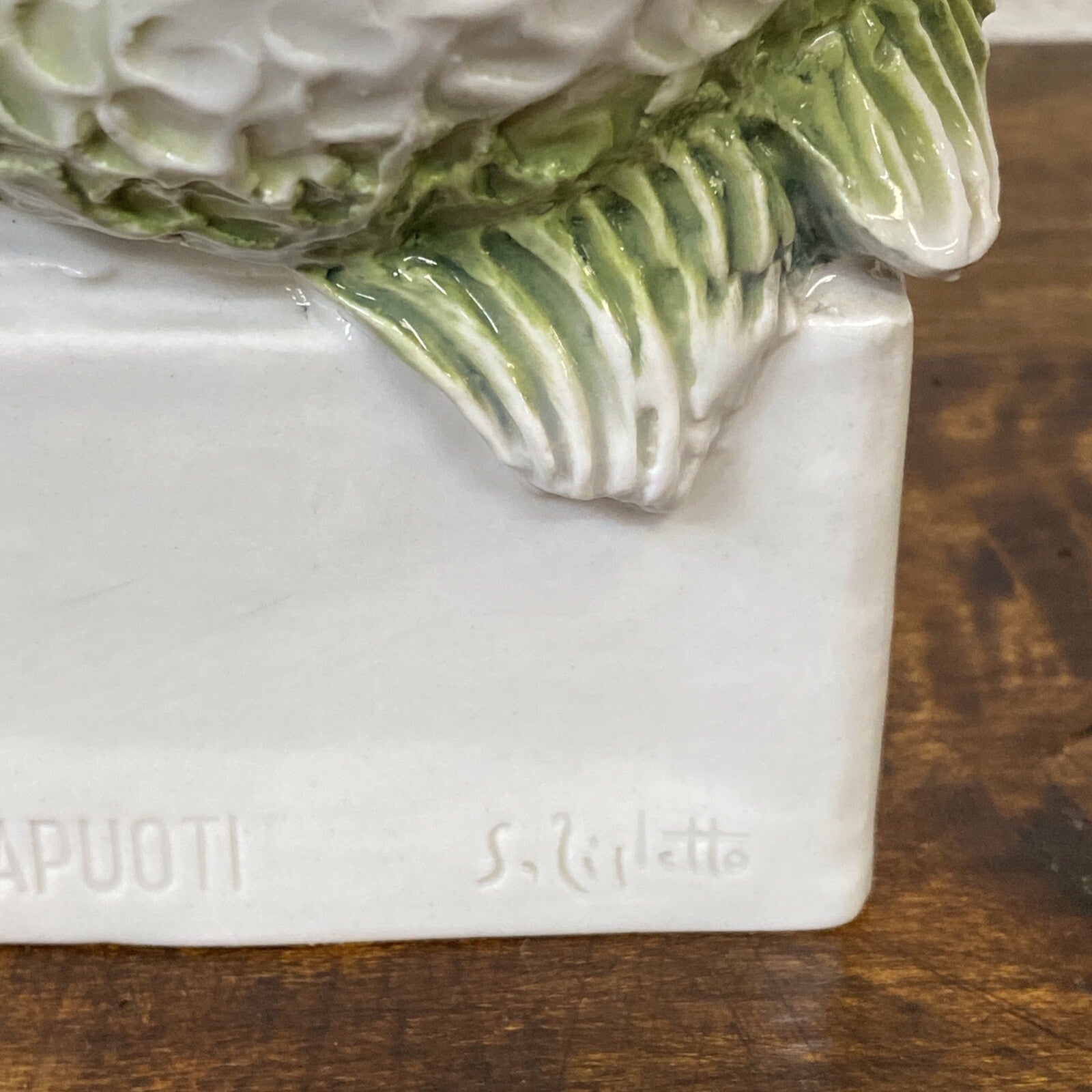 Offered for sale in an Italian glazed porcelain zodiac figure, "Pisces," Cacciapuoti, 20th c., depicting two overlapping fish, rising on integral plinth base.