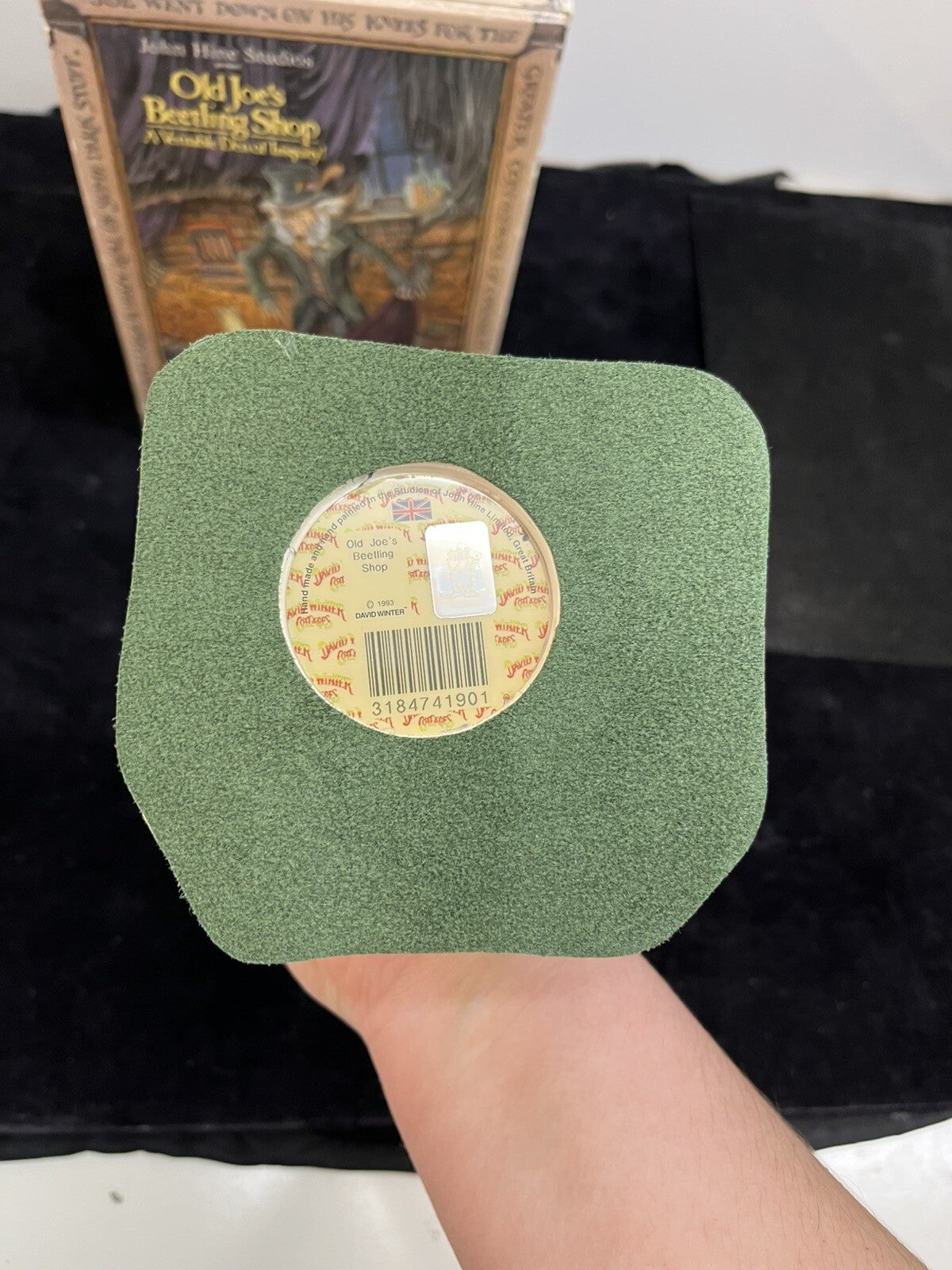 Crafted by the esteemed David Winter, this 1993 Christmas Special edition cottage is a charming addition to any holiday display. titled "Old Joe's Beetling Shop," this piece showcases the artisan's meticulous attention to detail, with hand-painted matte finishes that bring the quaint British shop to life. Measuring 8 inches in height and 4-1/2 inches in width, it's a medium-sized ceramic model that captures the essence of Christmas storytelling.