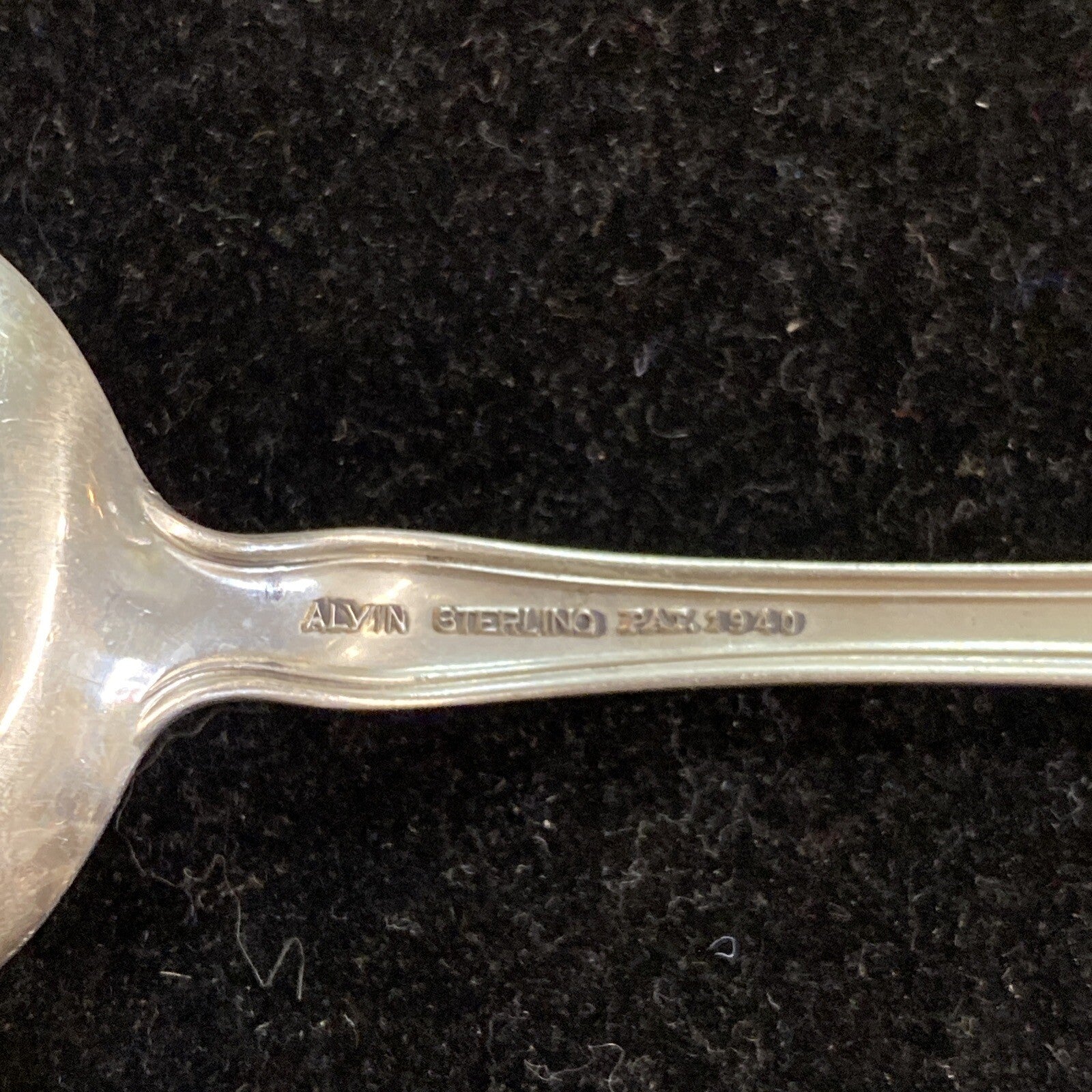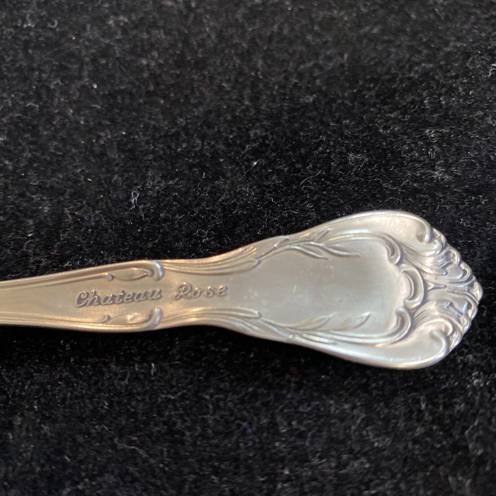 Offered for sale is a soup spoon in the Chateau Rose pattern by Alvin Sterling, no monograms. Produced from 1940 to 1991, Chateau Rose by Alvin Silver is an exquisite flatware pattern that features a scalloped tip, a glossy finish, and an elaborate floral design presented in crisp detail. With its elegant ornamentation, Chateau Rose is a gorgeous sterling silverware pattern!