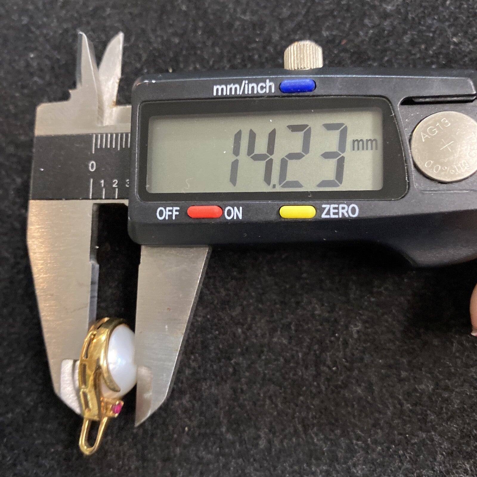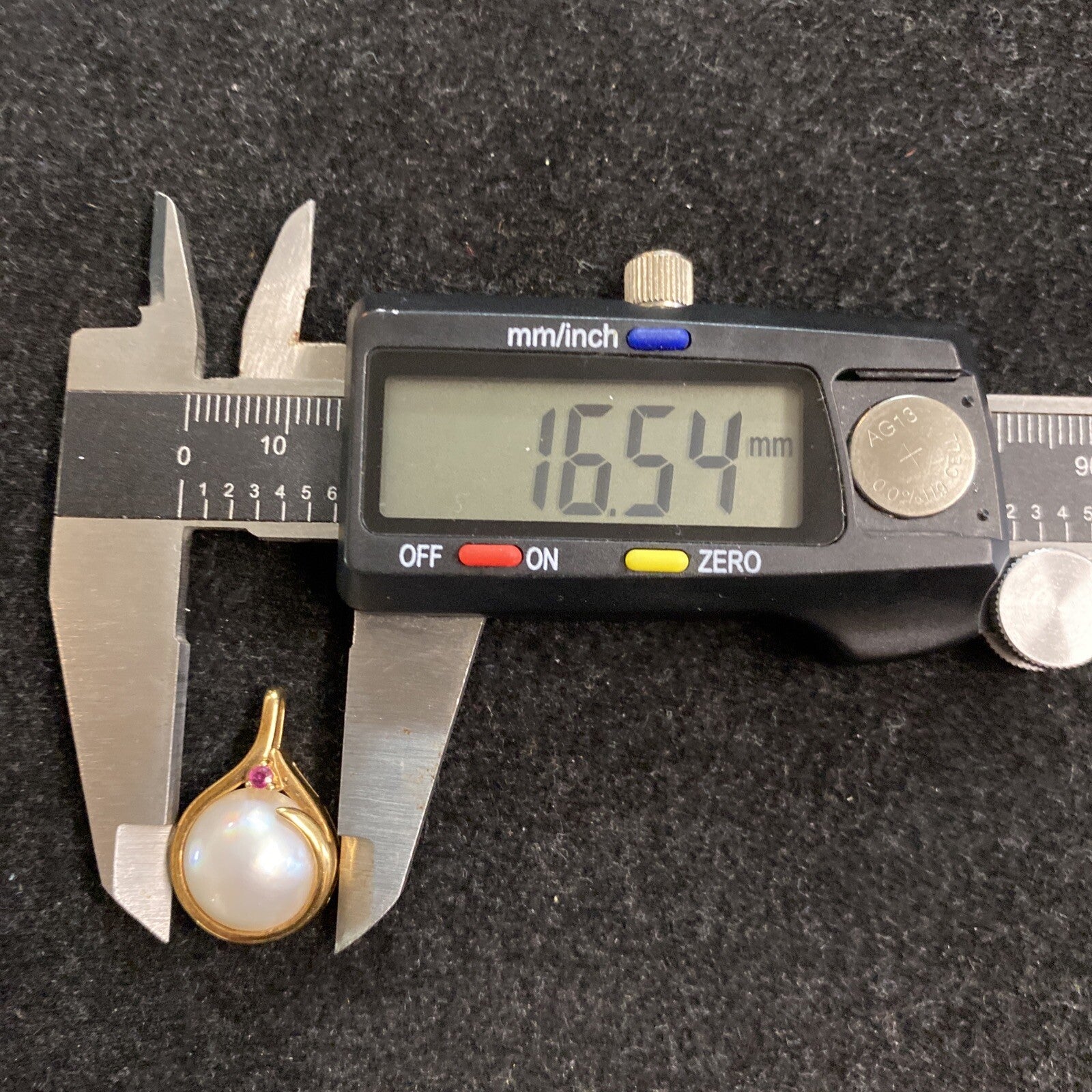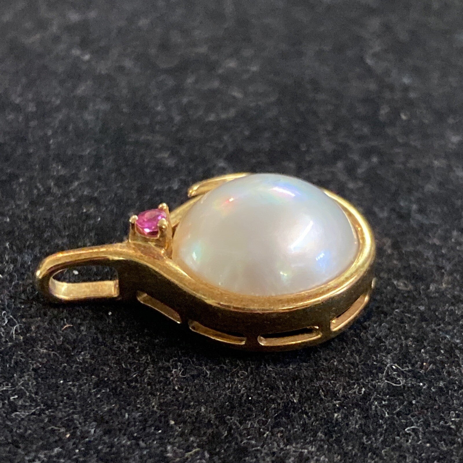 4.3g 14K Yellow Gold, Ruby & Pearl Pendant Necklace Drop 16.5mm