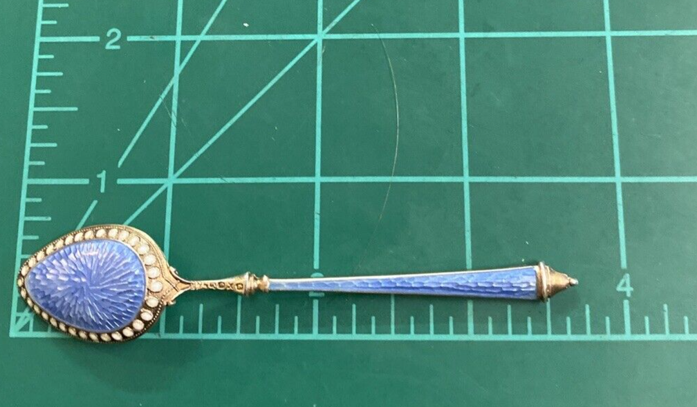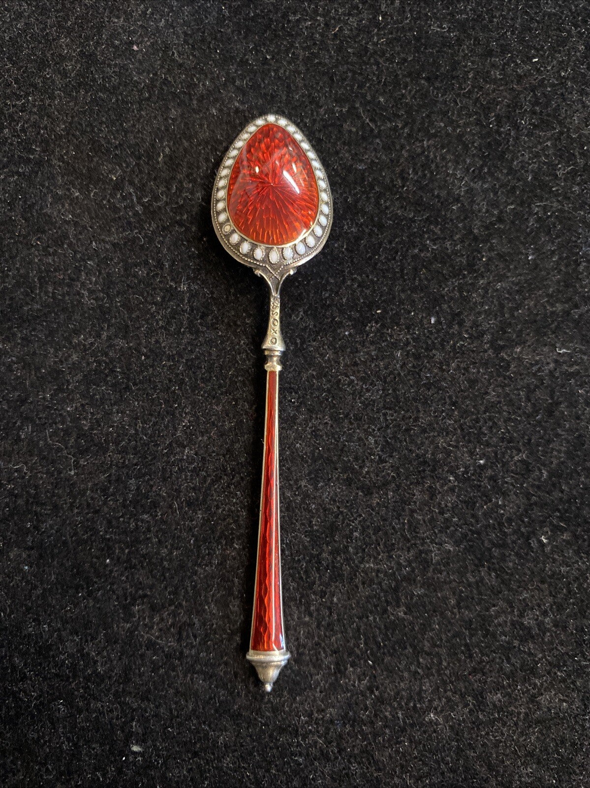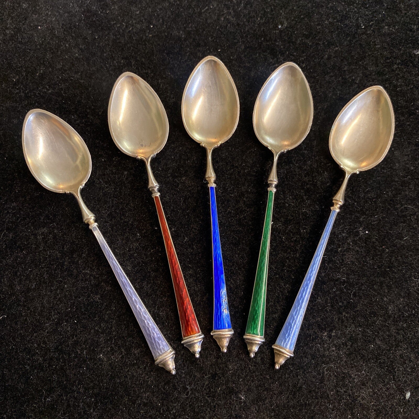 5x NORWEGIAN STERLING GUILLOCHE ENAMEL COFFEE SPOONS by MARIUS HAMMER 41g