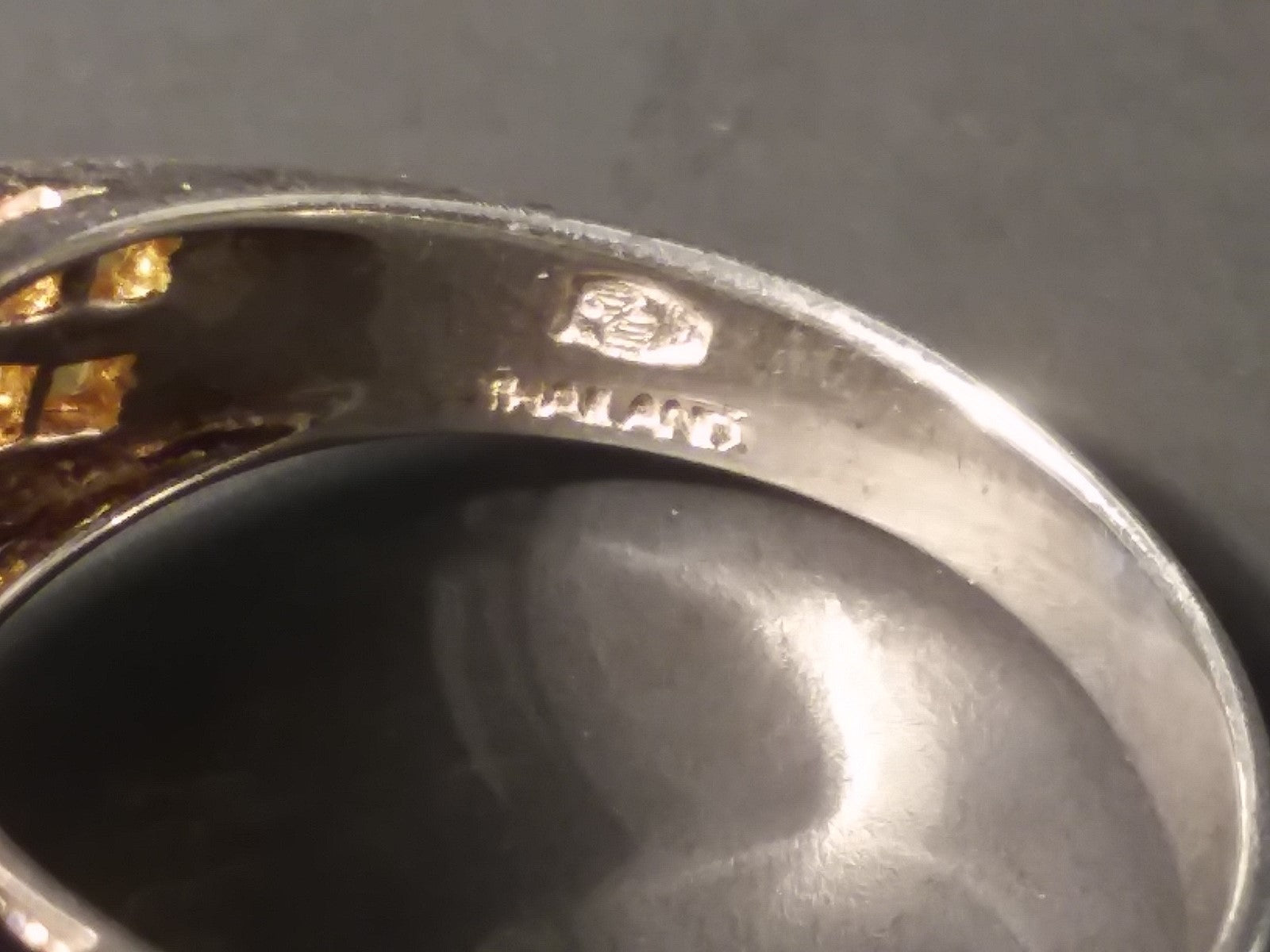 925 Sterling Cz & Yellow Citrine Gemstone Ring 5.3g sz 9.75