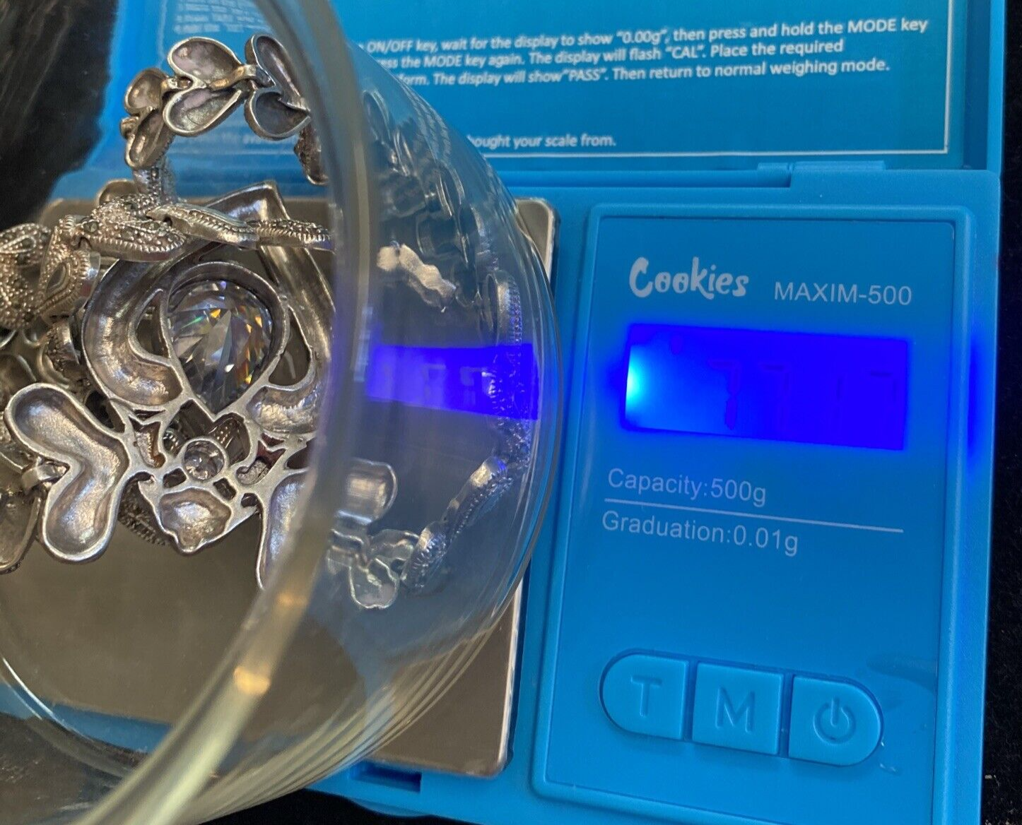 925 Sterling Silver 17.5 in Marcasite Gemstone Heart Design Link Necklace 77.1g