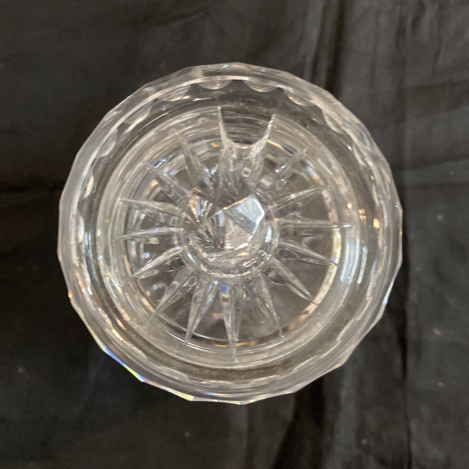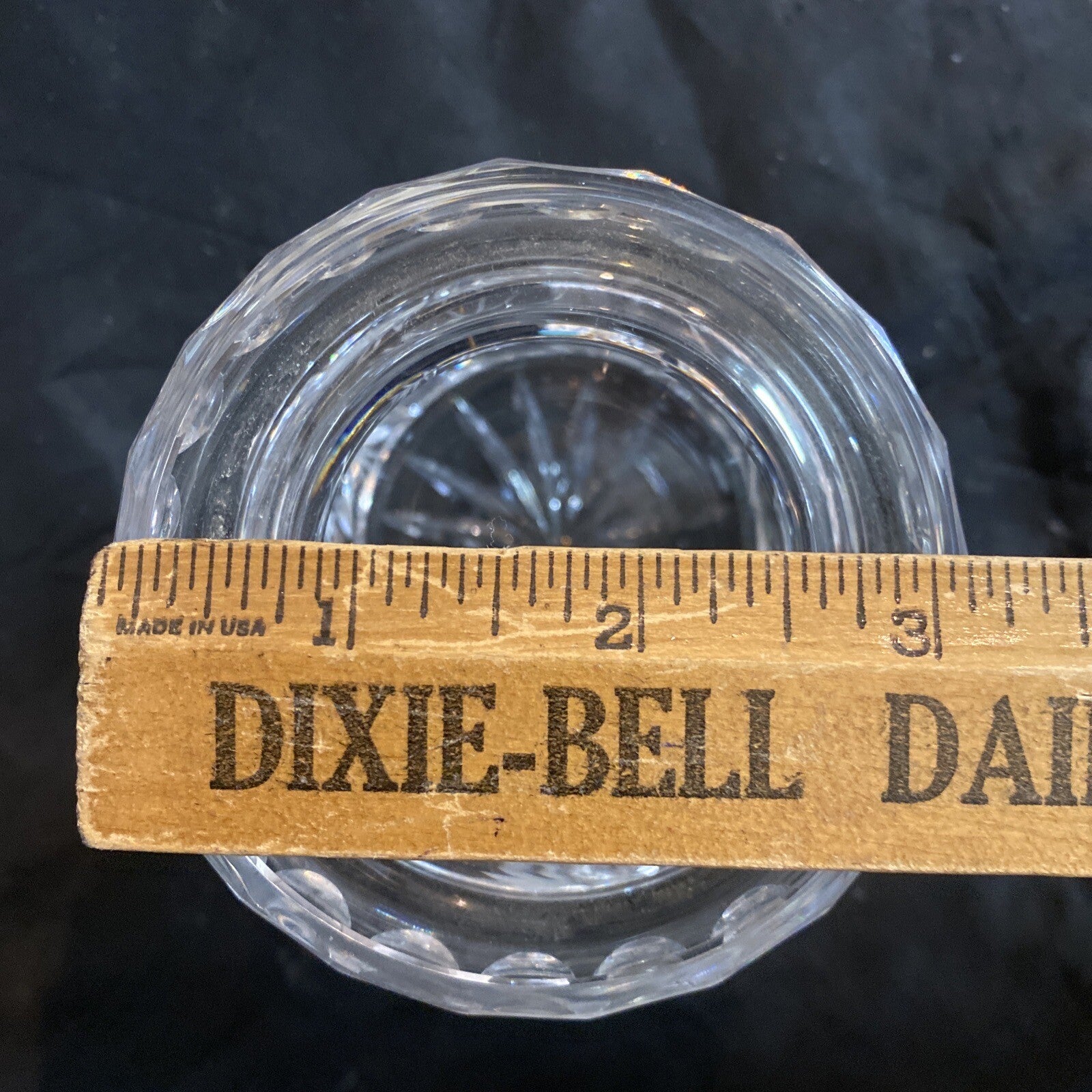 Offered for sale is an American Brilliant Period cut glass jam jar with lid H 4.5" x W 3" in mint condition.