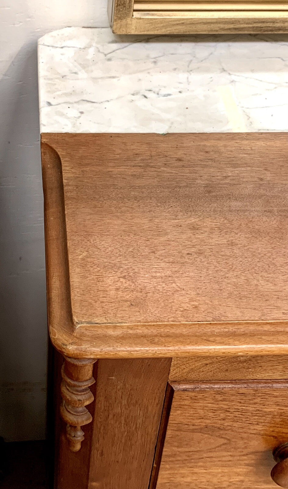 Antique American Victorian Walnut Chest of 3 Drawers marble back cabinet