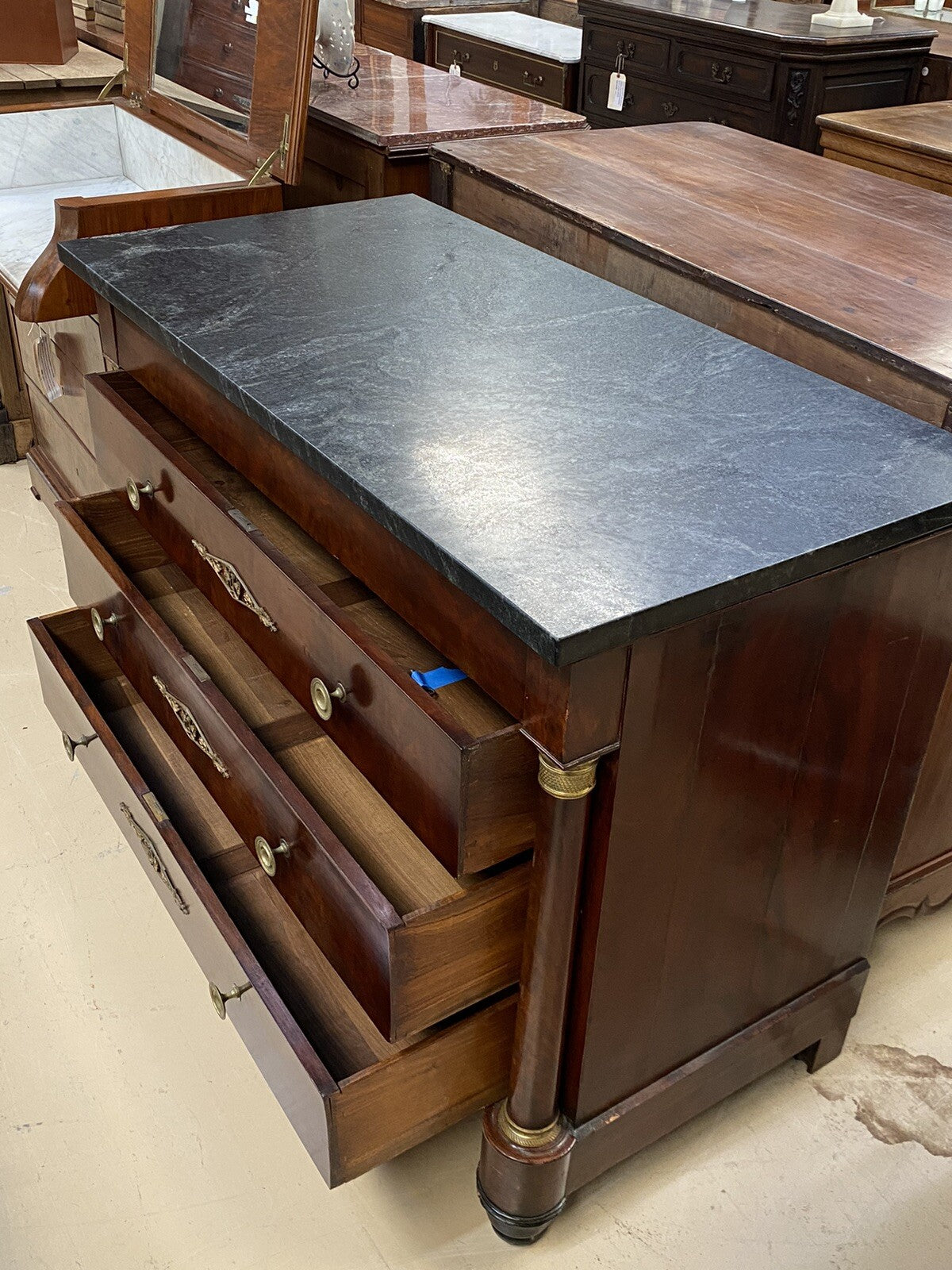 Antique Burled Walnut Mid-19th Century Empire and Marble Top Chest Commode