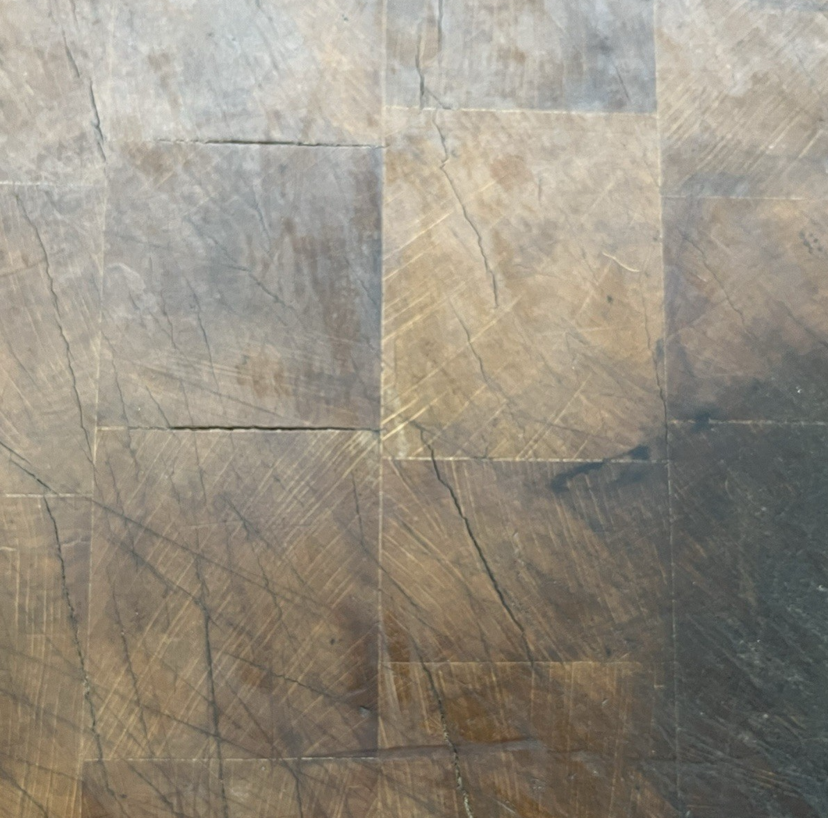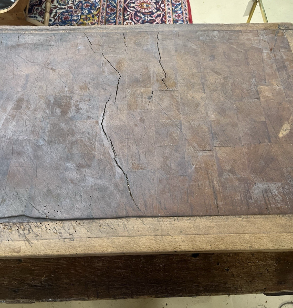 ANTIQUE FRENCH CARVED MIXED WOOD BUTCHER'S BLOCK WORK TABLE ISLAND 61" x 21"
