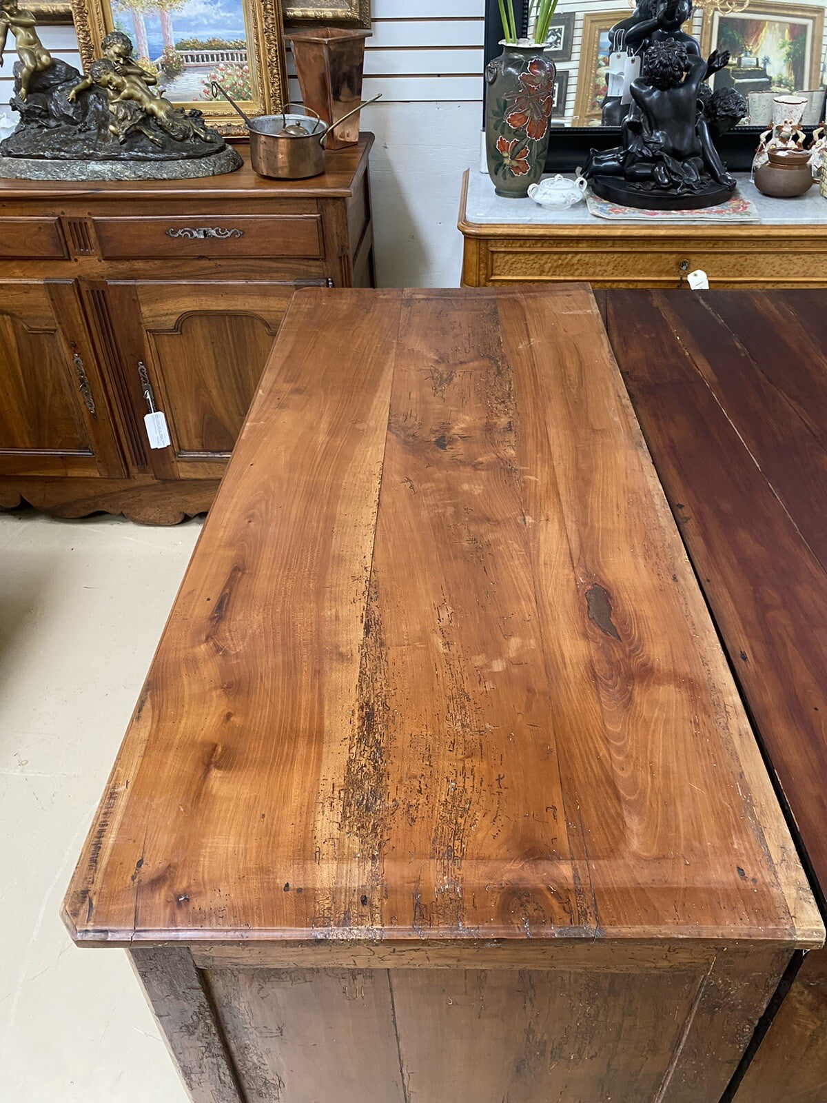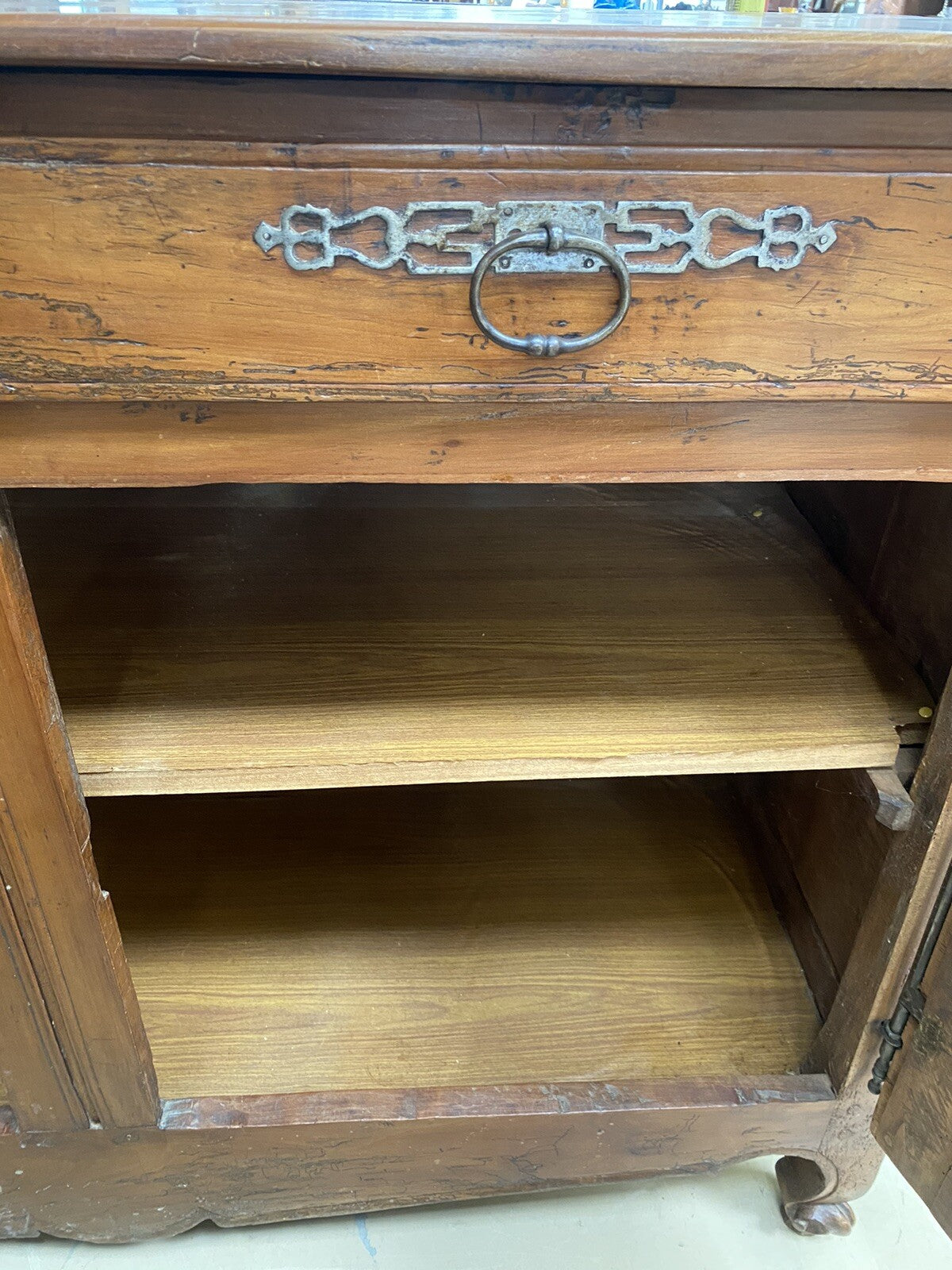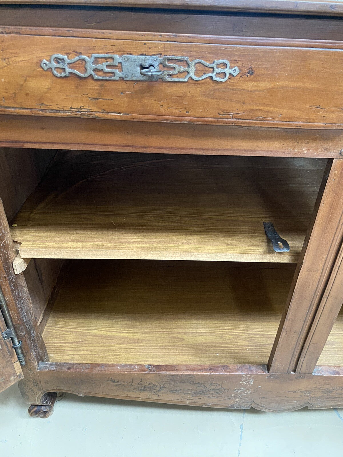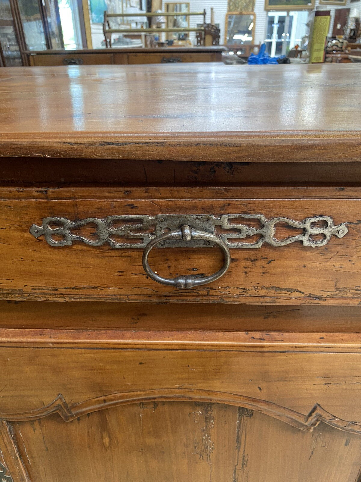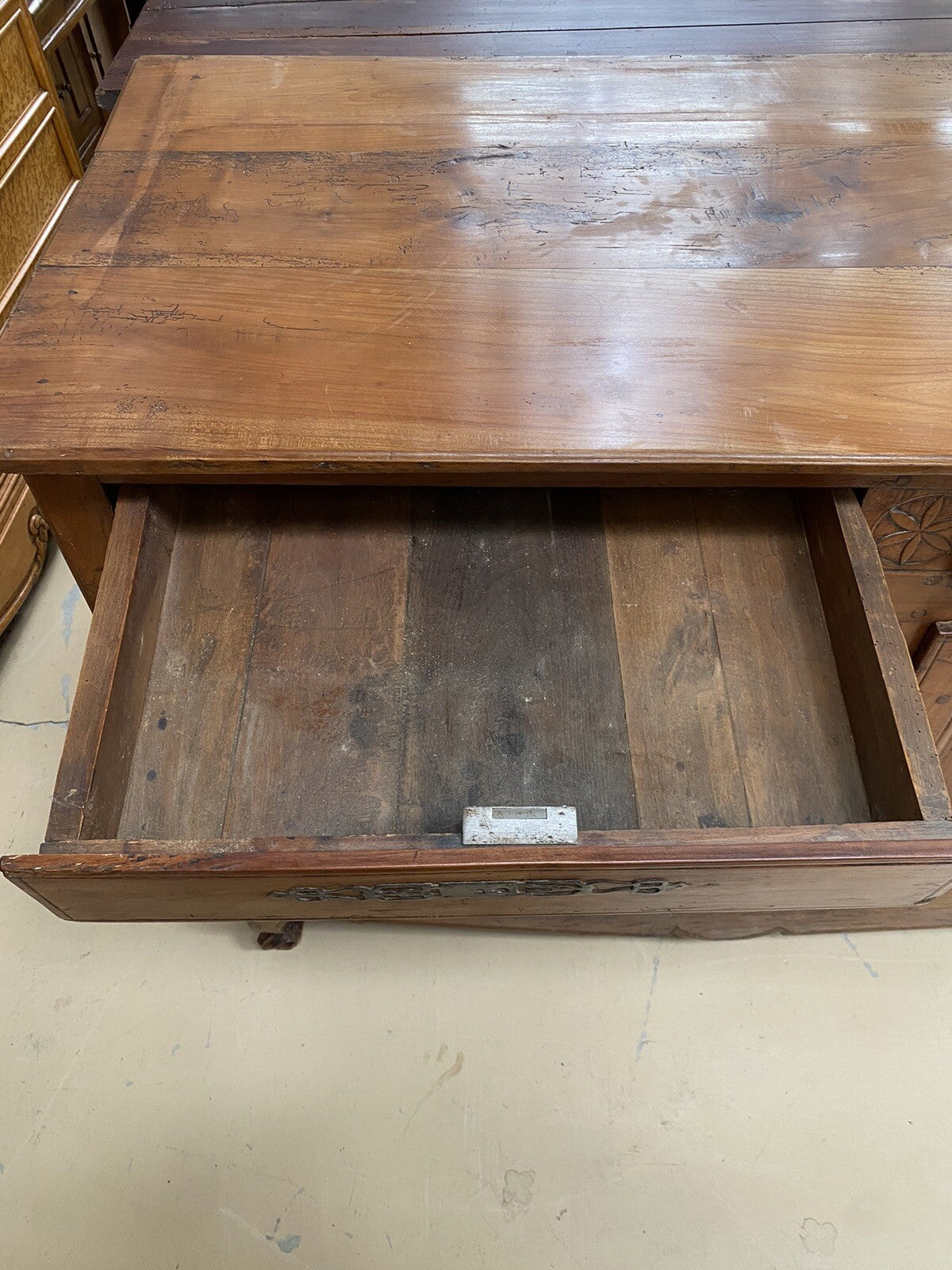 Antique French Farmhouse Louis XV Carved Cherry Chest Sideboard Commode 19C A6