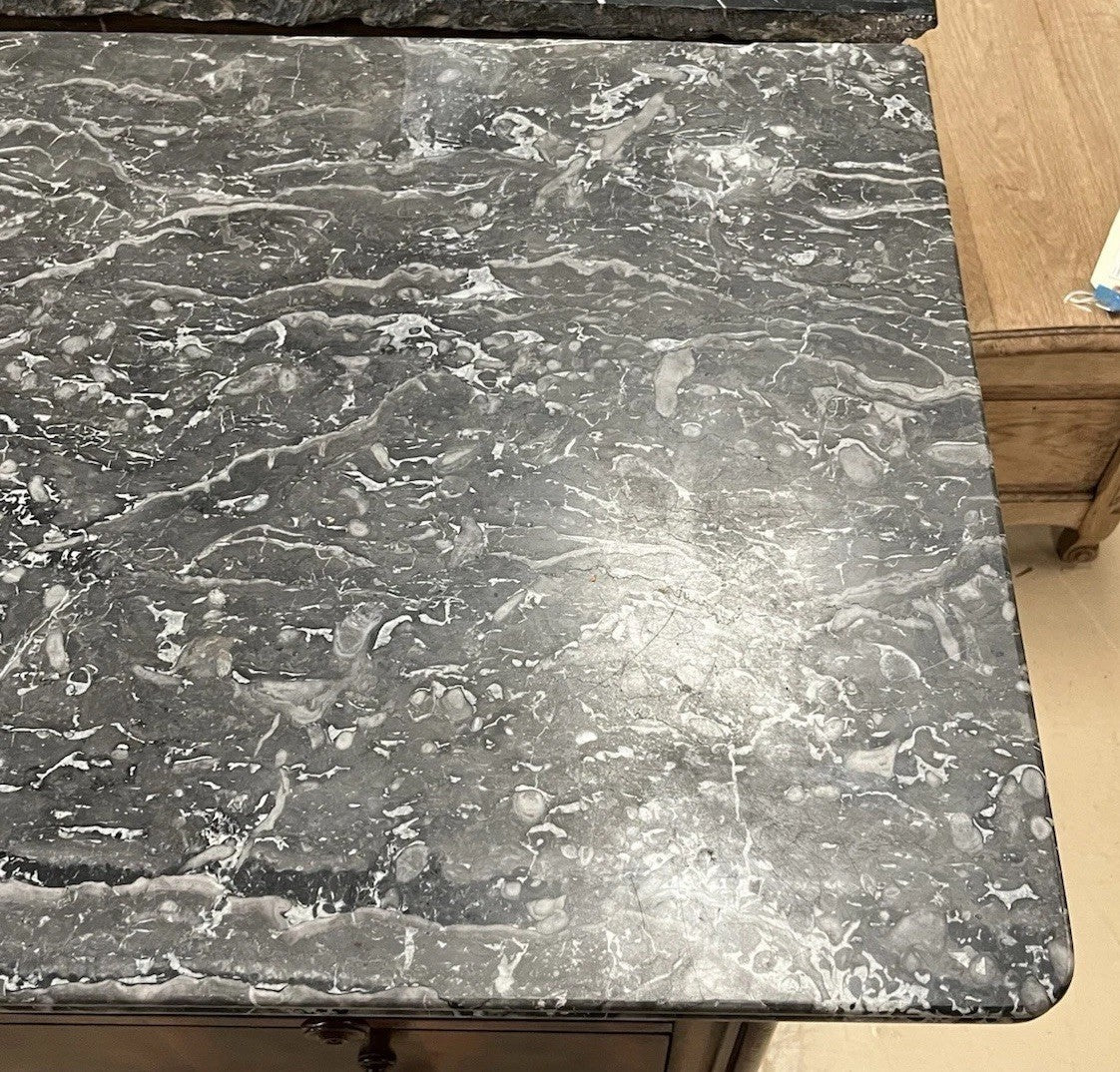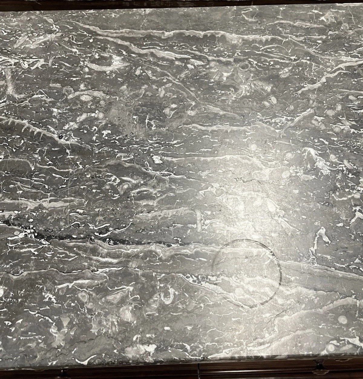 ANTIQUE FRENCH LOUIS PHILIPPE MARBLE-TOP BURLED MAHOGANY CHEST COMMODE