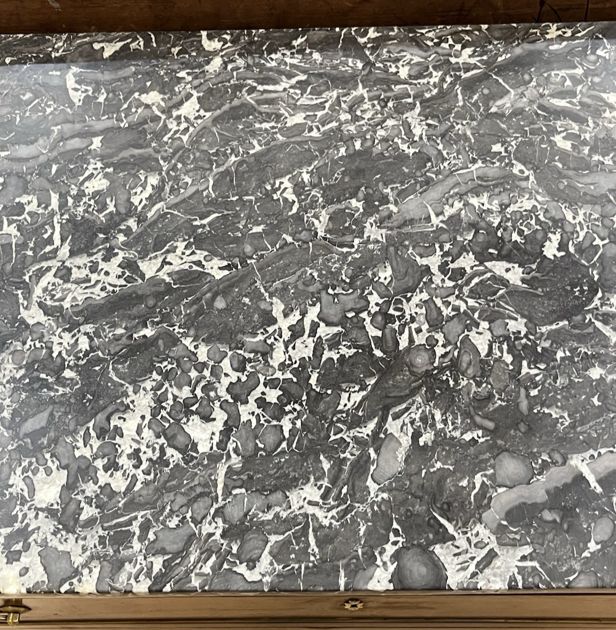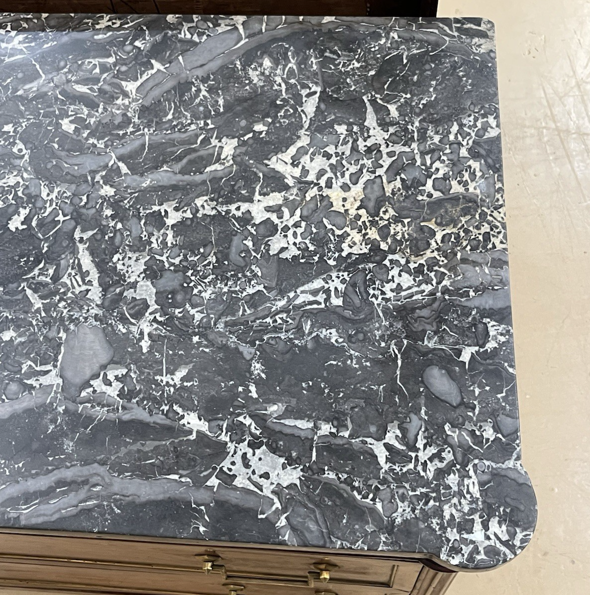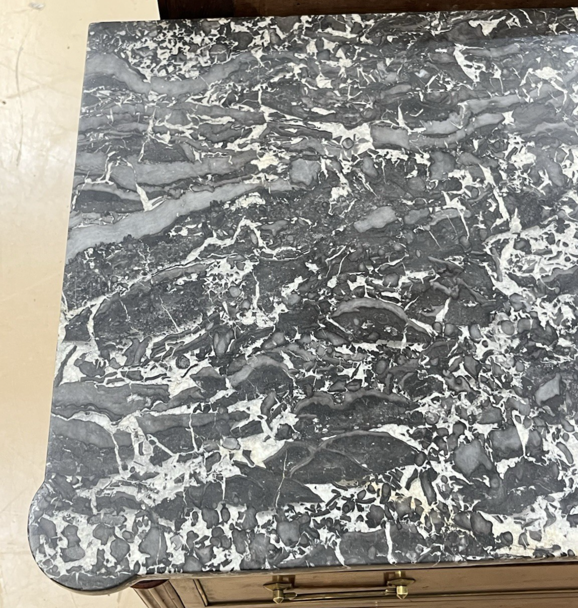 ANTIQUE FRENCH LOUIS XVI 5-DRAWER MAHOGANY COMMODE CHEST w/ GREY MARBLE TOP
