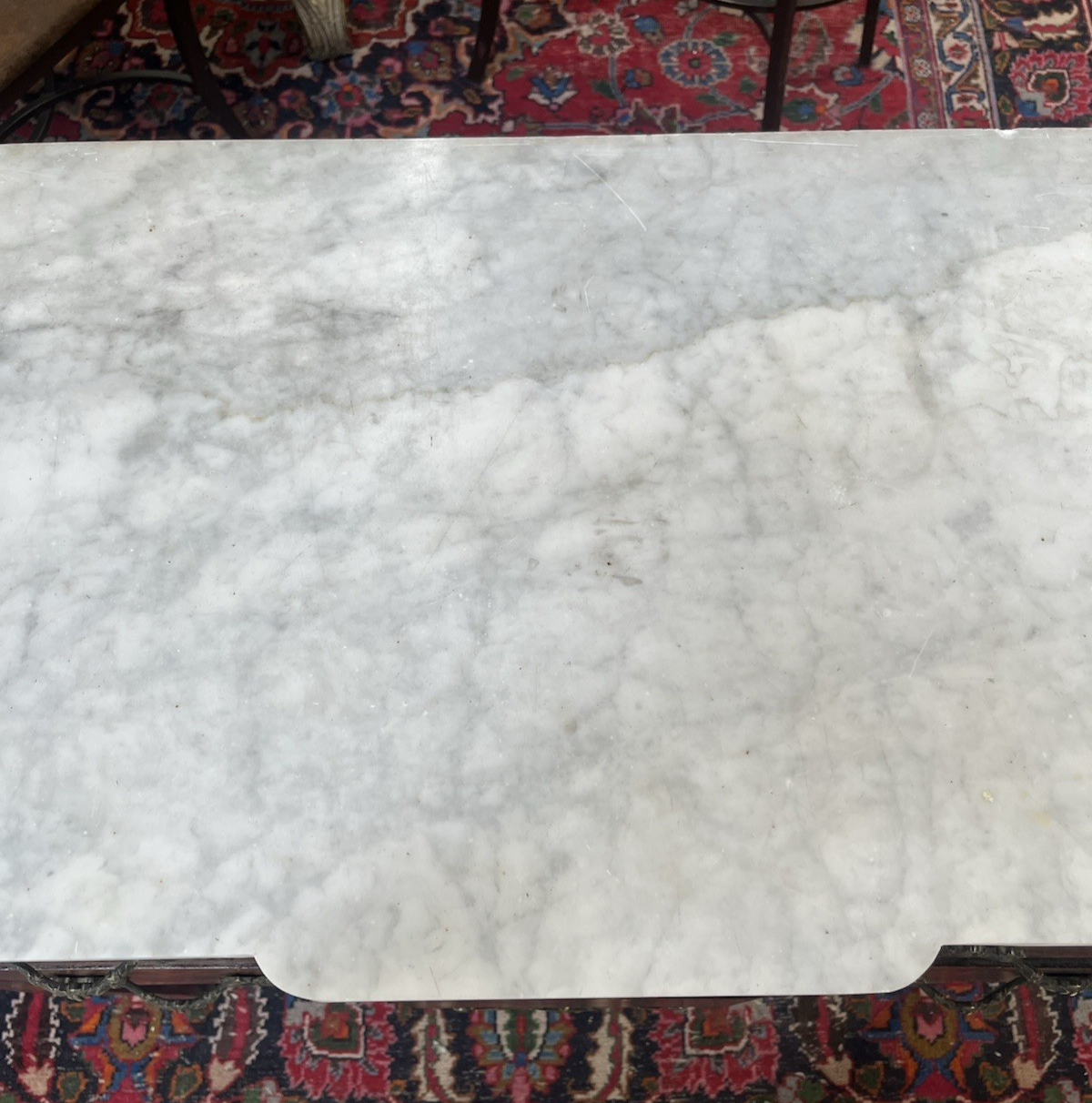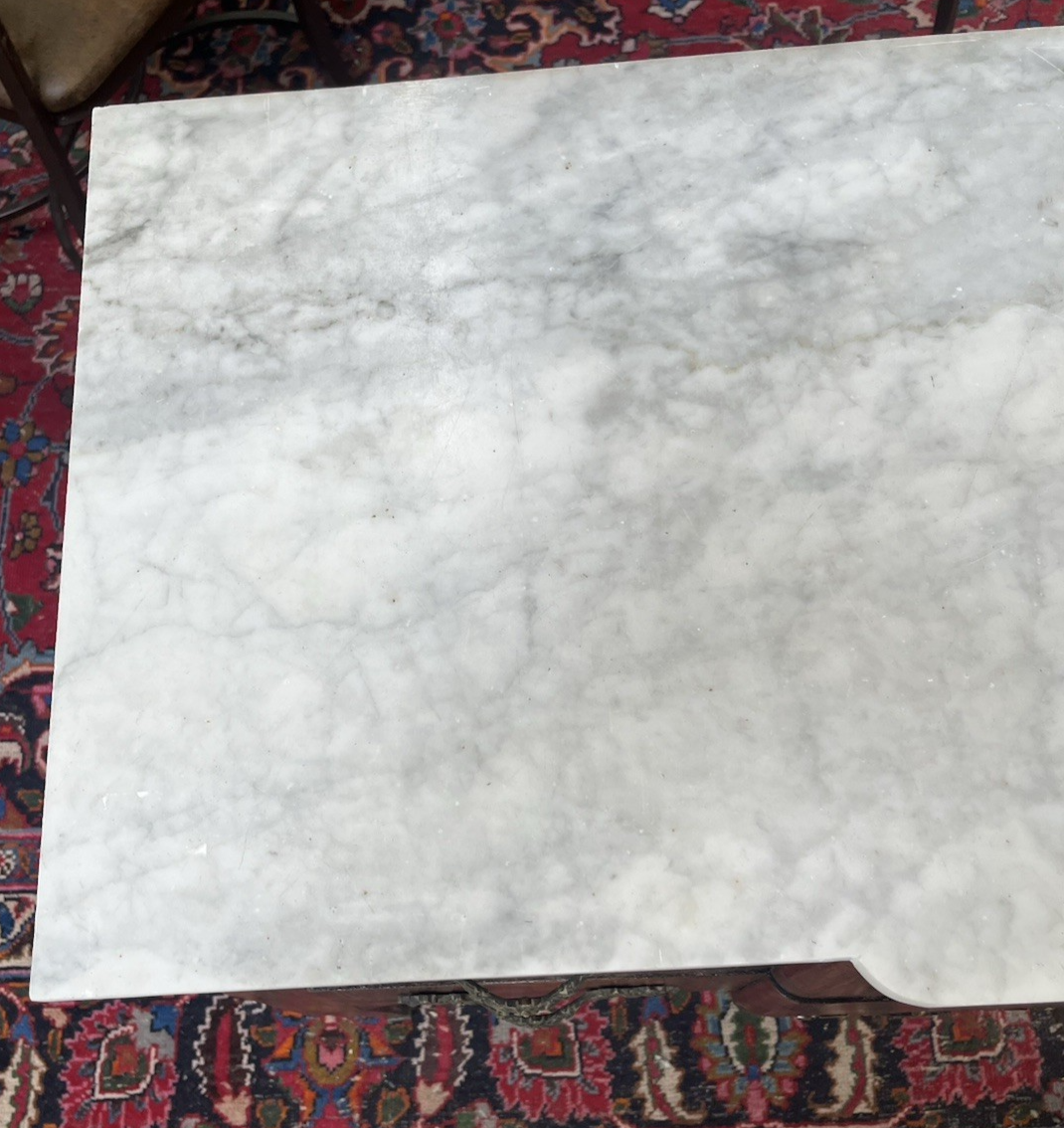 ANTIQUE FRENCH LOUIS XVI MARBLE-TOP INLAID BREAKFRONT COMMODE CHEST