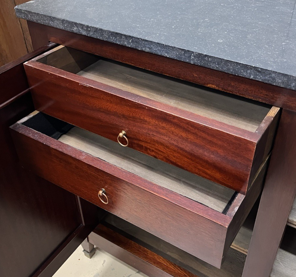 ANTIQUE FRENCH LOUIS XVI MARBLE TOP MAHOGANY SIDEBOARD ENFILADE CHEST 79" WIDE