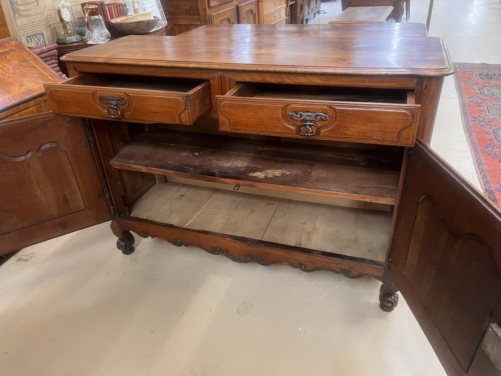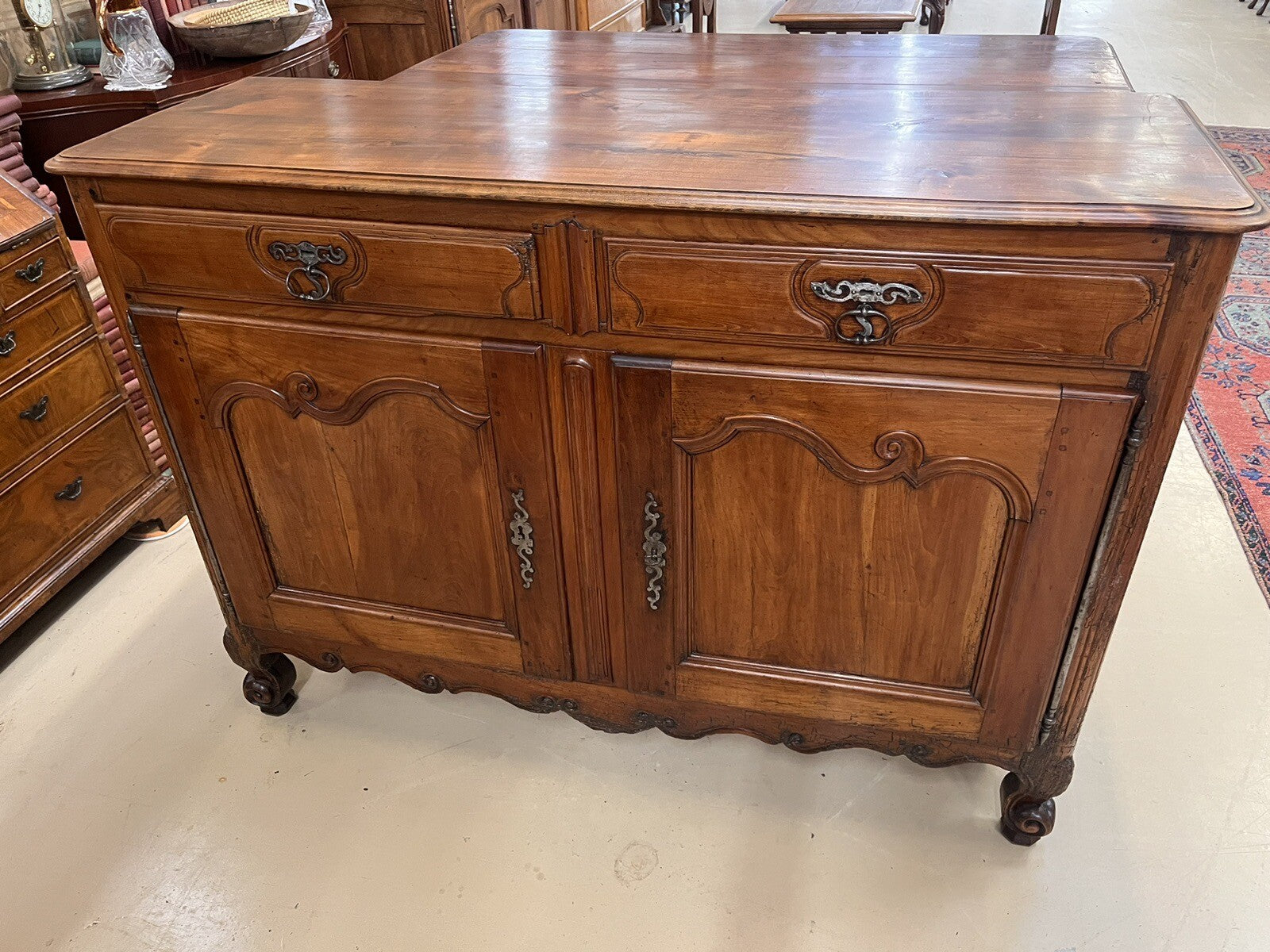 This antique French provincial farmhouse commode dresser is an exquisite piece of furniture that will add a touch of elegance to any home decor. Made of high-quality fruitwood, this dresser boasts a French style with two drawers that provide ample storage space. The chest has an overall height of 42.5 inches, length of 59.25 inches, and width of 19.75 inches.