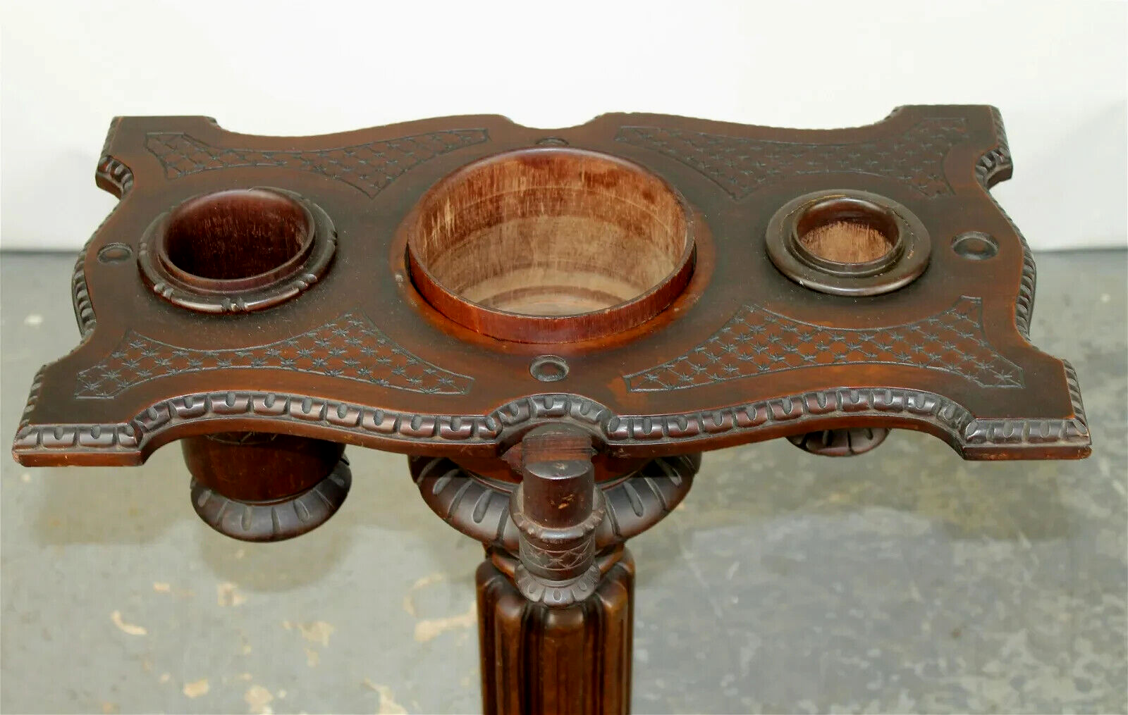 Antique German Carved Swivel Smoking Stand Black Forest Style Pipe Cigar Tobacco