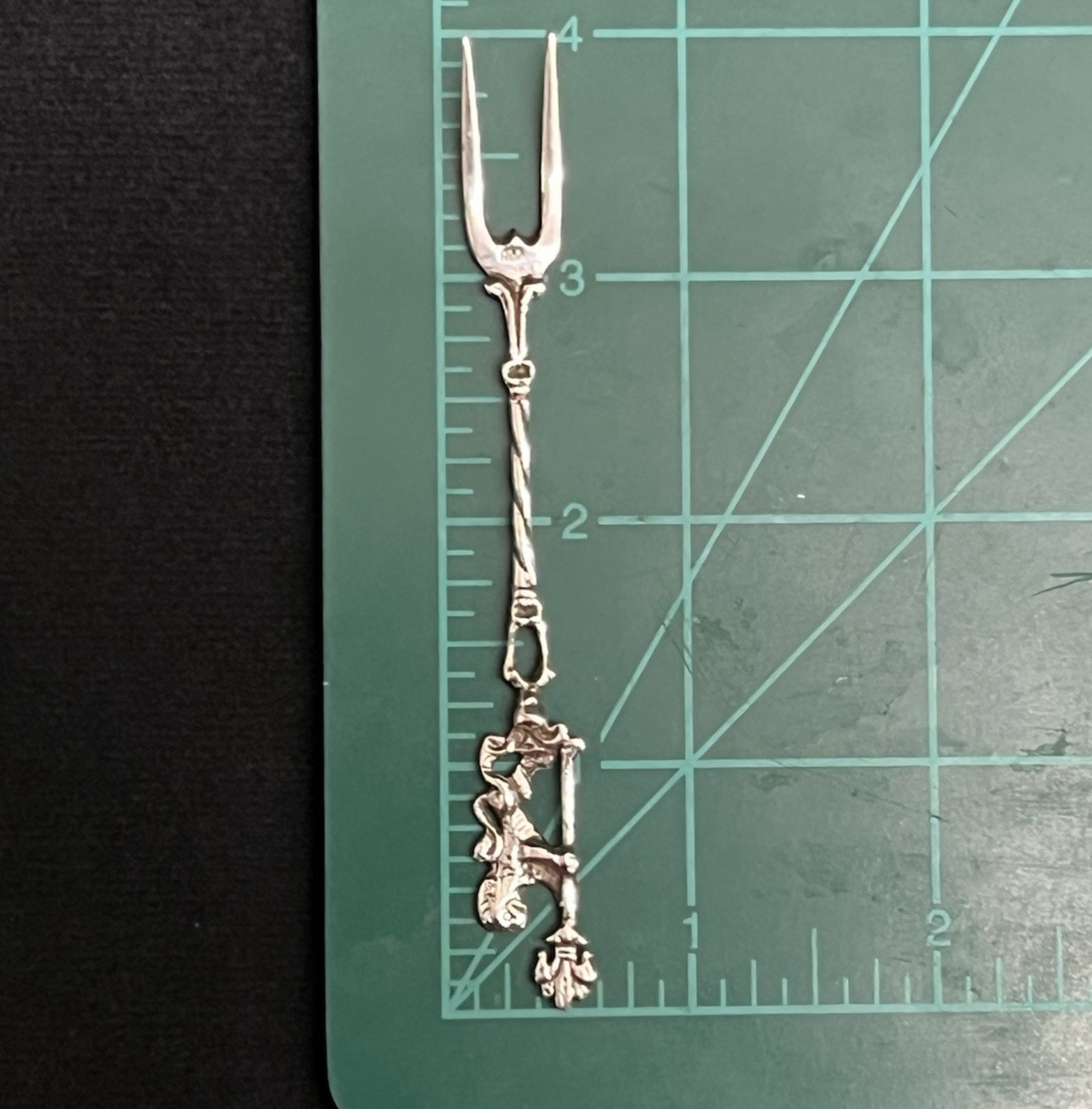 Antique Italian 5g Firenze .800 Silver Heraldic Lion Figural Olive Fork 4"