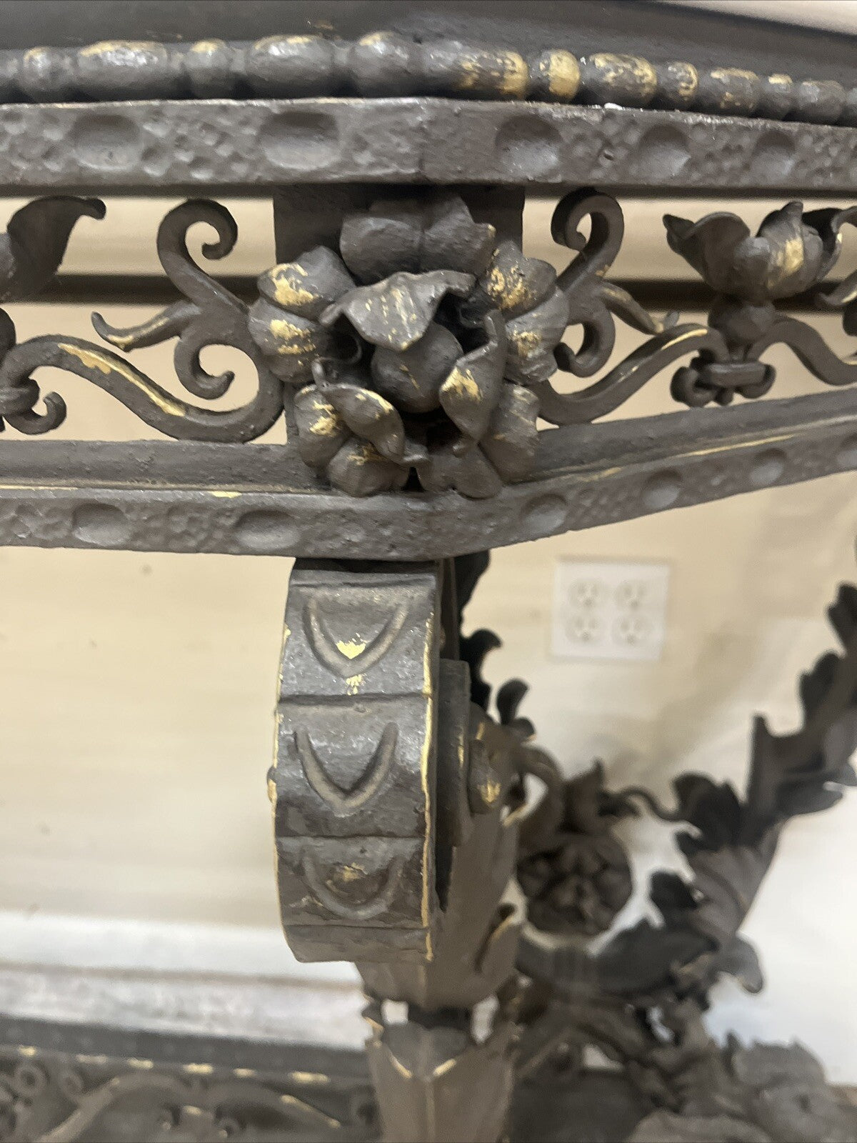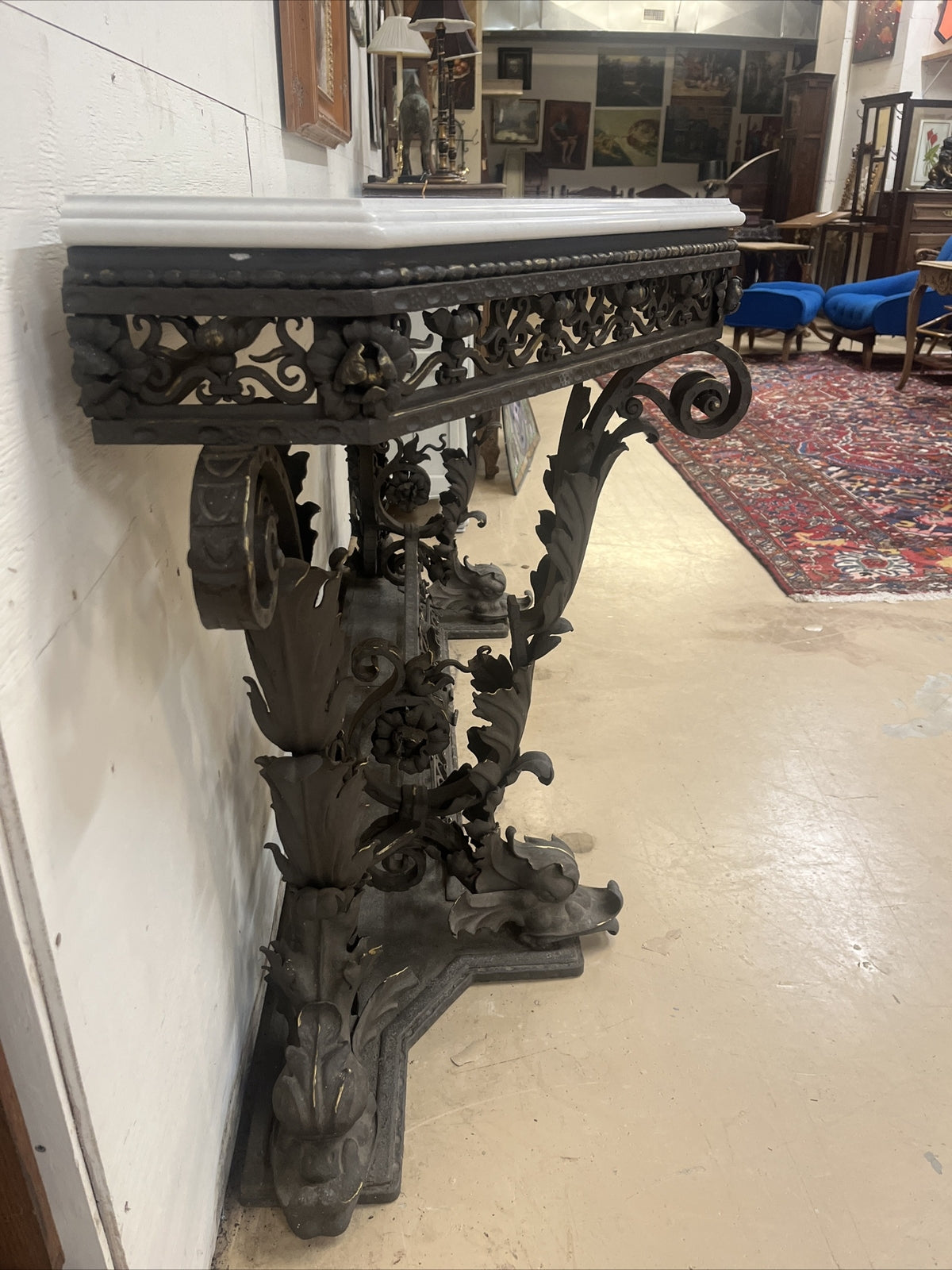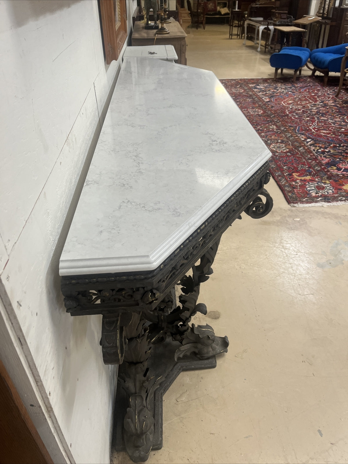 ANTIQUE ITALIAN VENETIAN WROUGHT IRON CONSOLE SIDEBOARD W/ WHITE QUARTZ TOP 105”