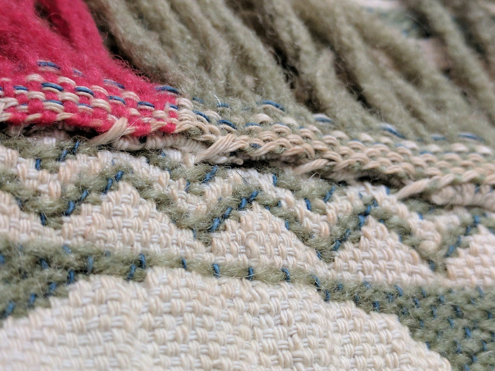 Antique Jacquard Wool Woven American 3 Color Coverlet mid1800's Ohio? Signed NB
