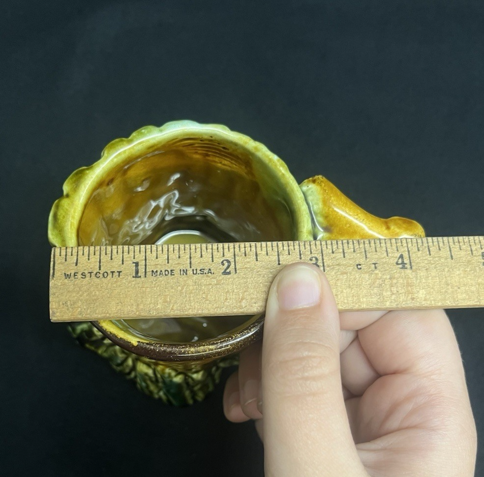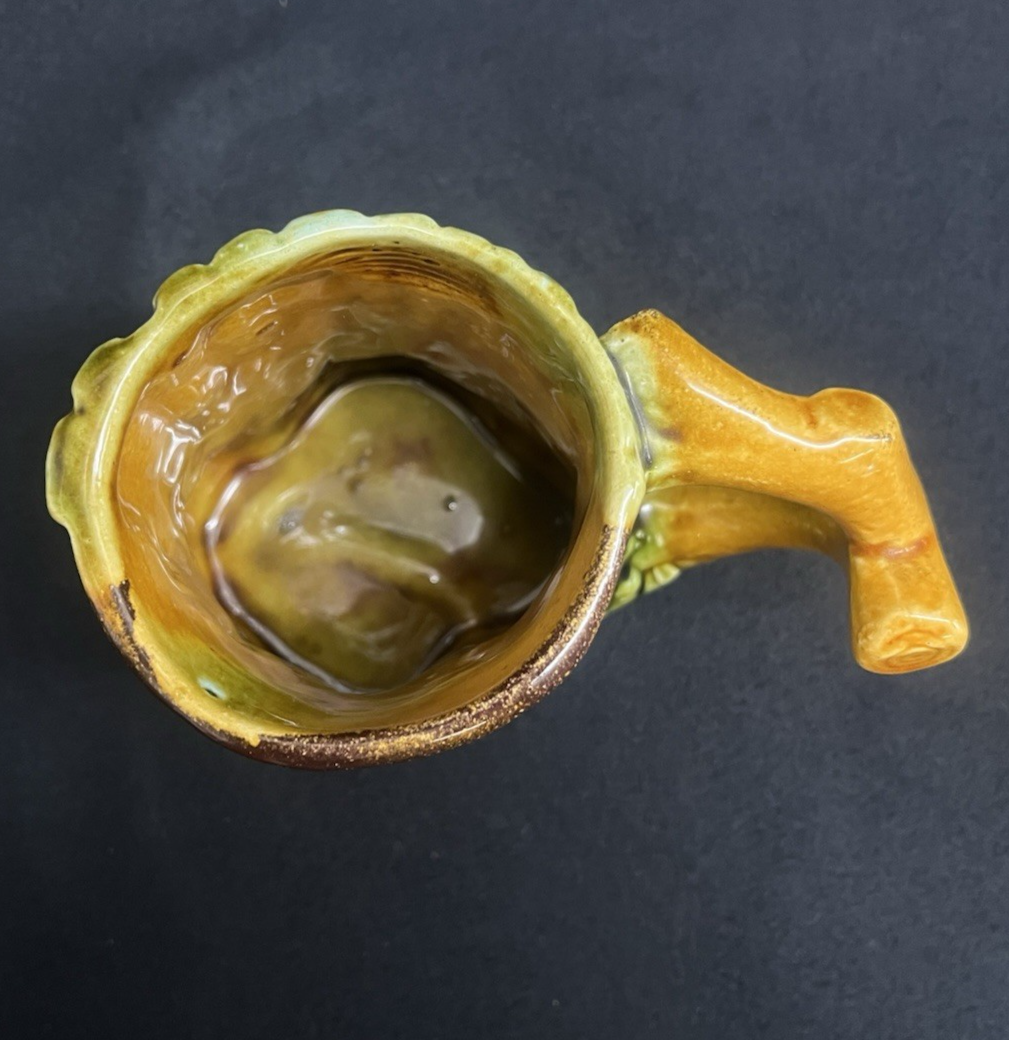 Antique Majolica Tree Trunk Textured Brown and Green Mug 4.5"