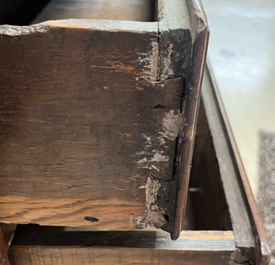 ANTIQUE SPANISH BAROQUE RUSTIC INLAID WALNUT COMMODE CHEST OF DRAWERS 51" X 24"