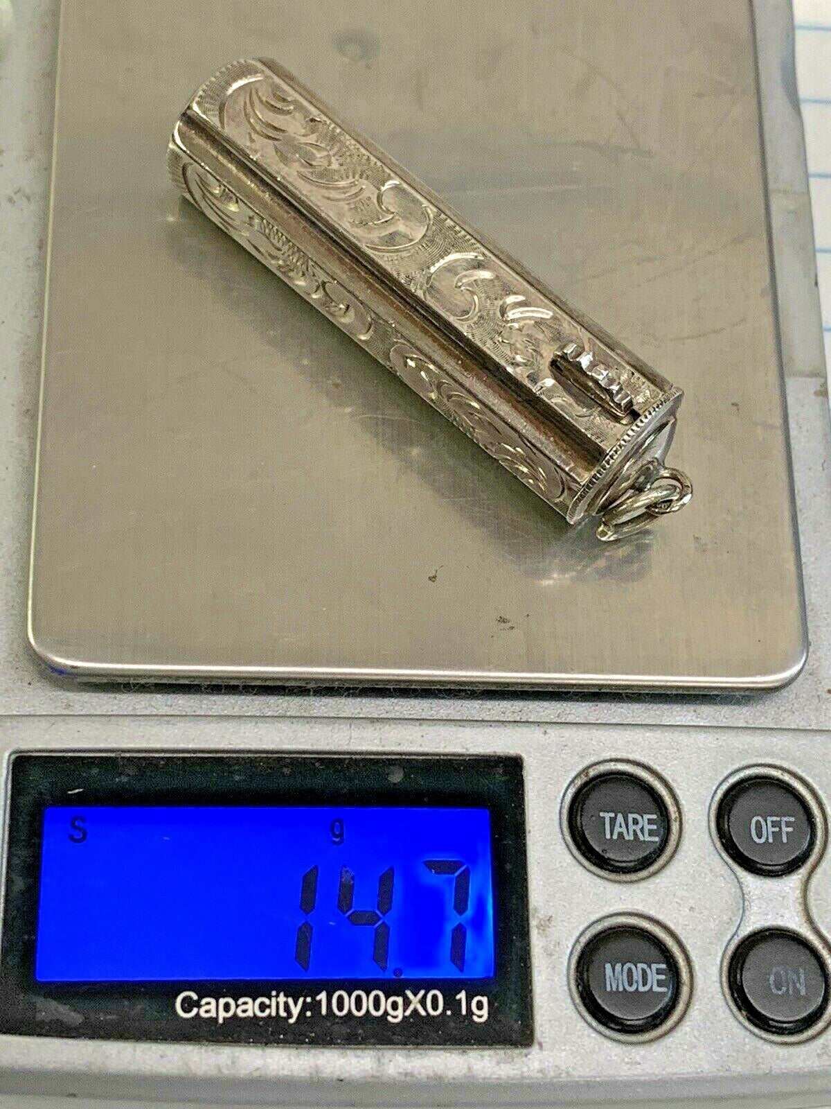 Antique Sterling Silver Lipstick Holder Pendant Chatelaine Edwardian English