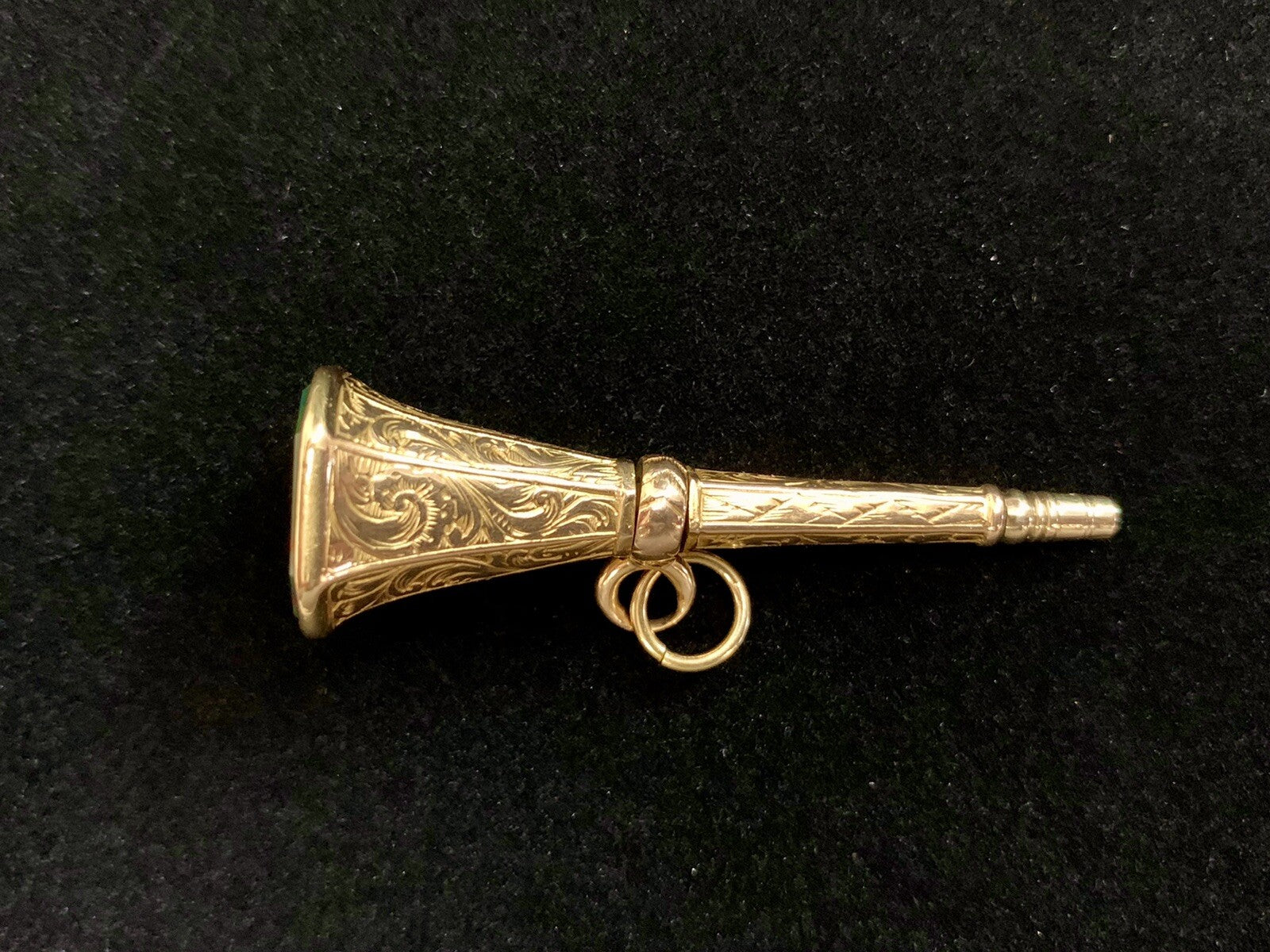 Antique Victorian Bloodstone Watch Key Yellow Gold Beautiful Chasing Work