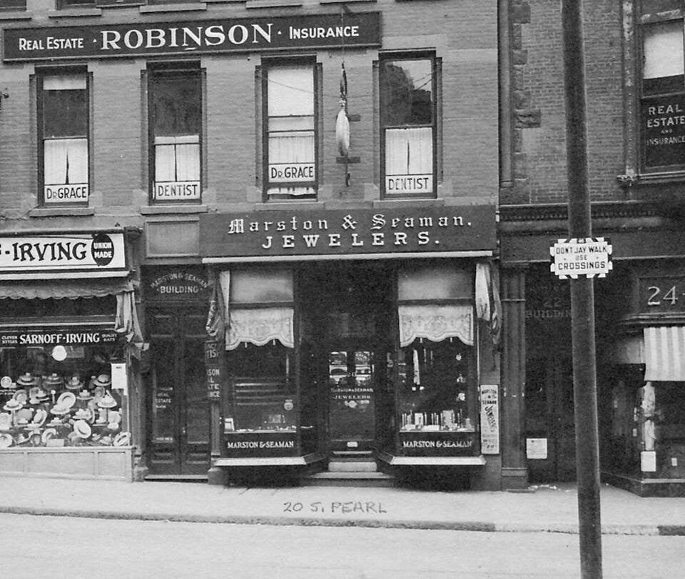 Offered for sale is a Wm Rogers & Sons Sterling ladies folding fruit knife with apple engraved on blade, made from 1860-1890. Comes in original velvet case with silk interior reading " Marstone Seaman Jewelers, Albany, NY. See photo of jewelry store in last photo.