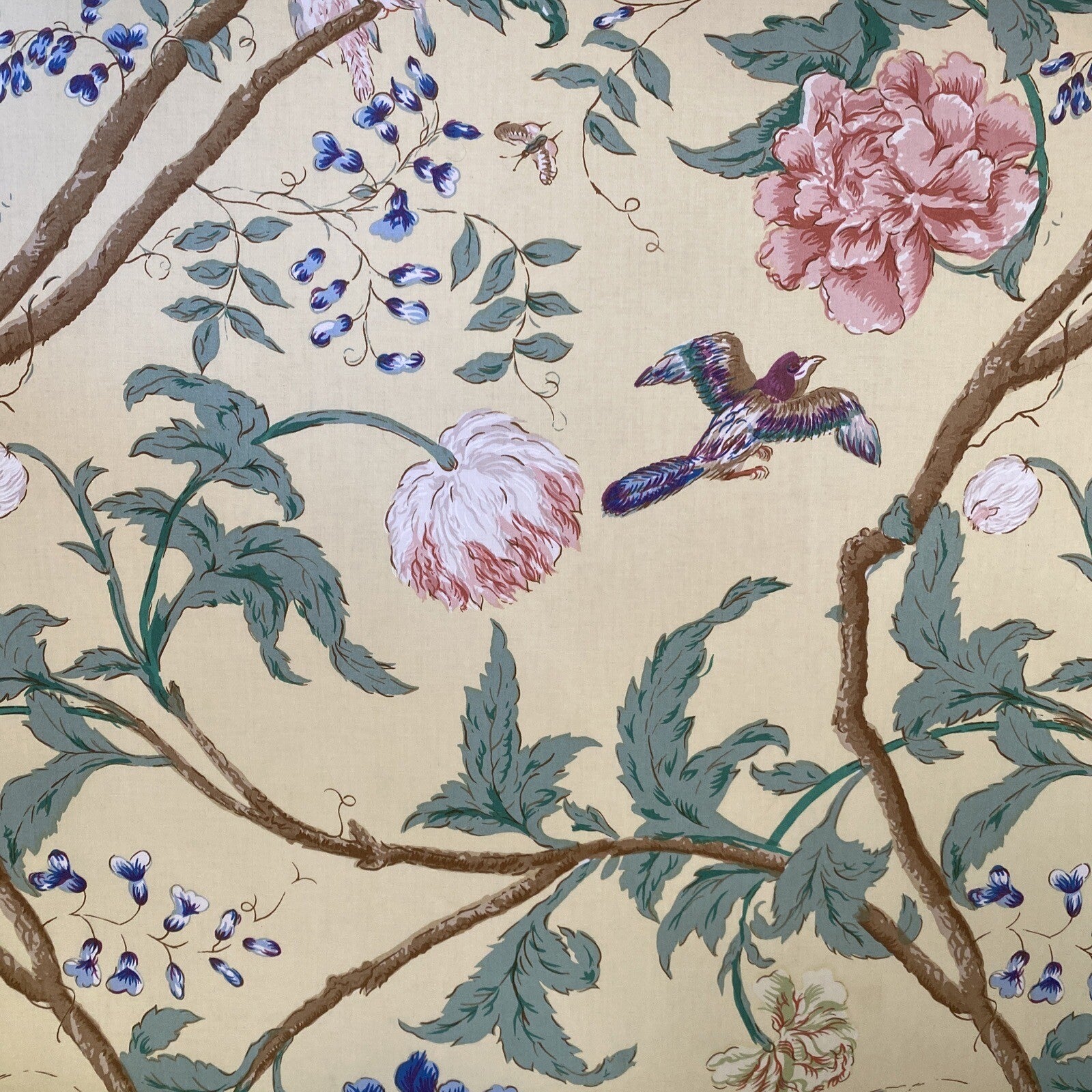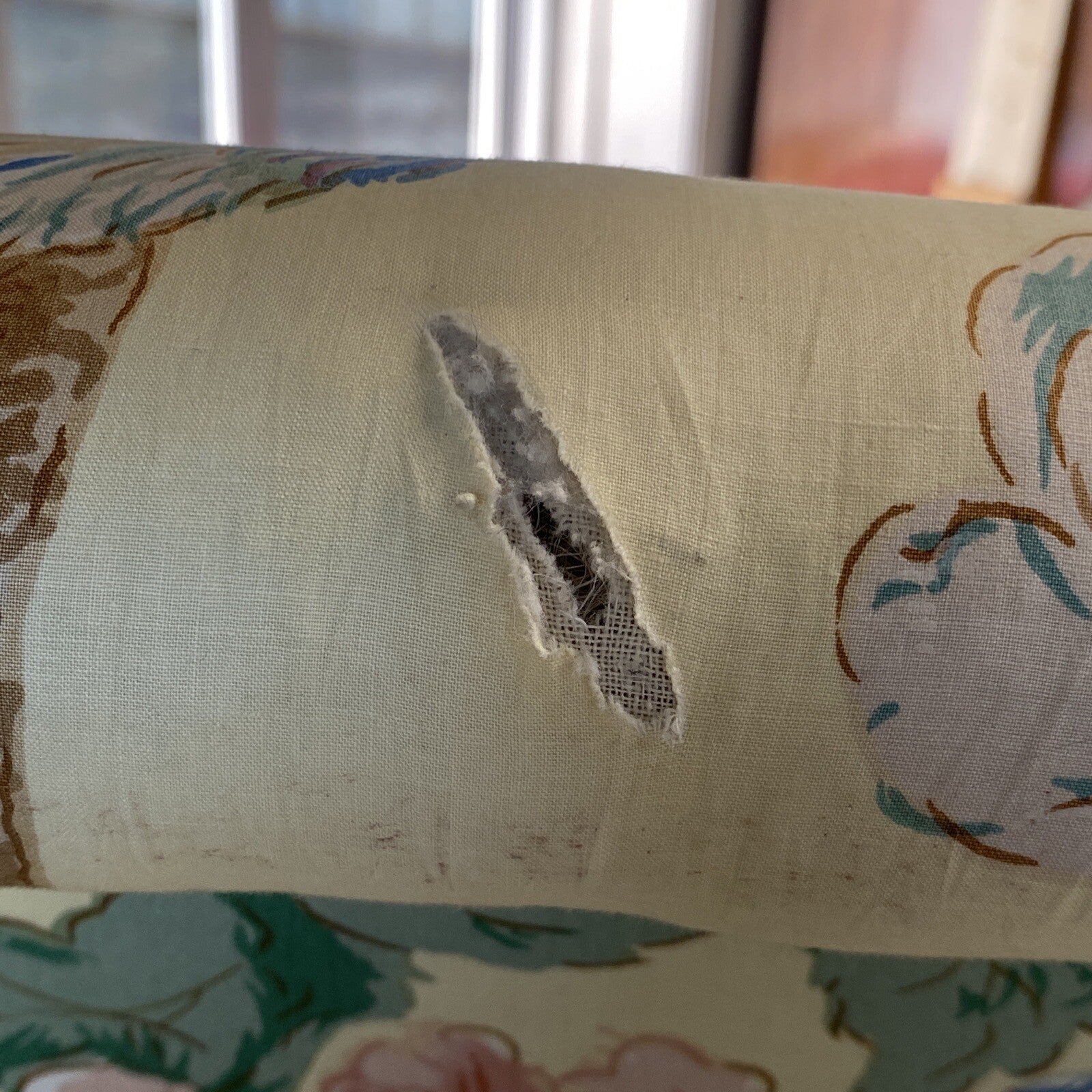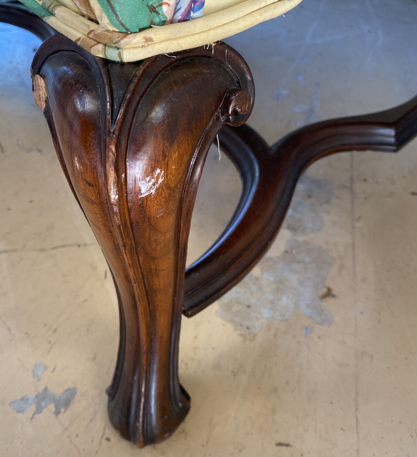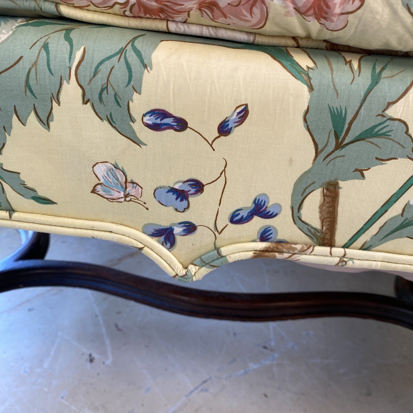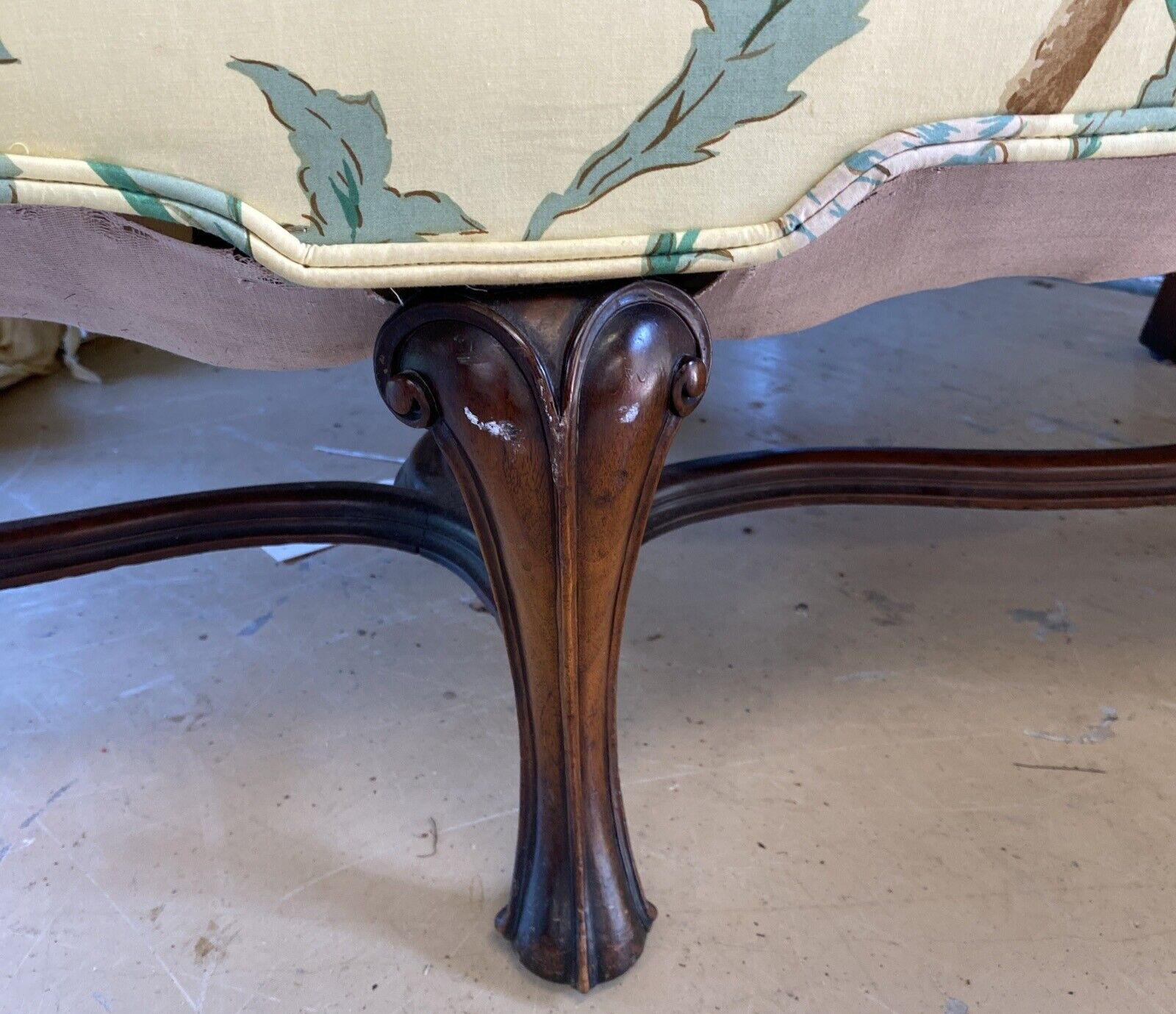 Antique Yellow Floral Queen Anne Mahogany Sofa Couch Settee Loveseat