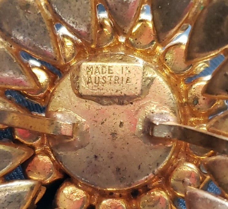 AUSTRIA Amazing Rhinestone Vintage Dome Pin Topaz and Lime Green