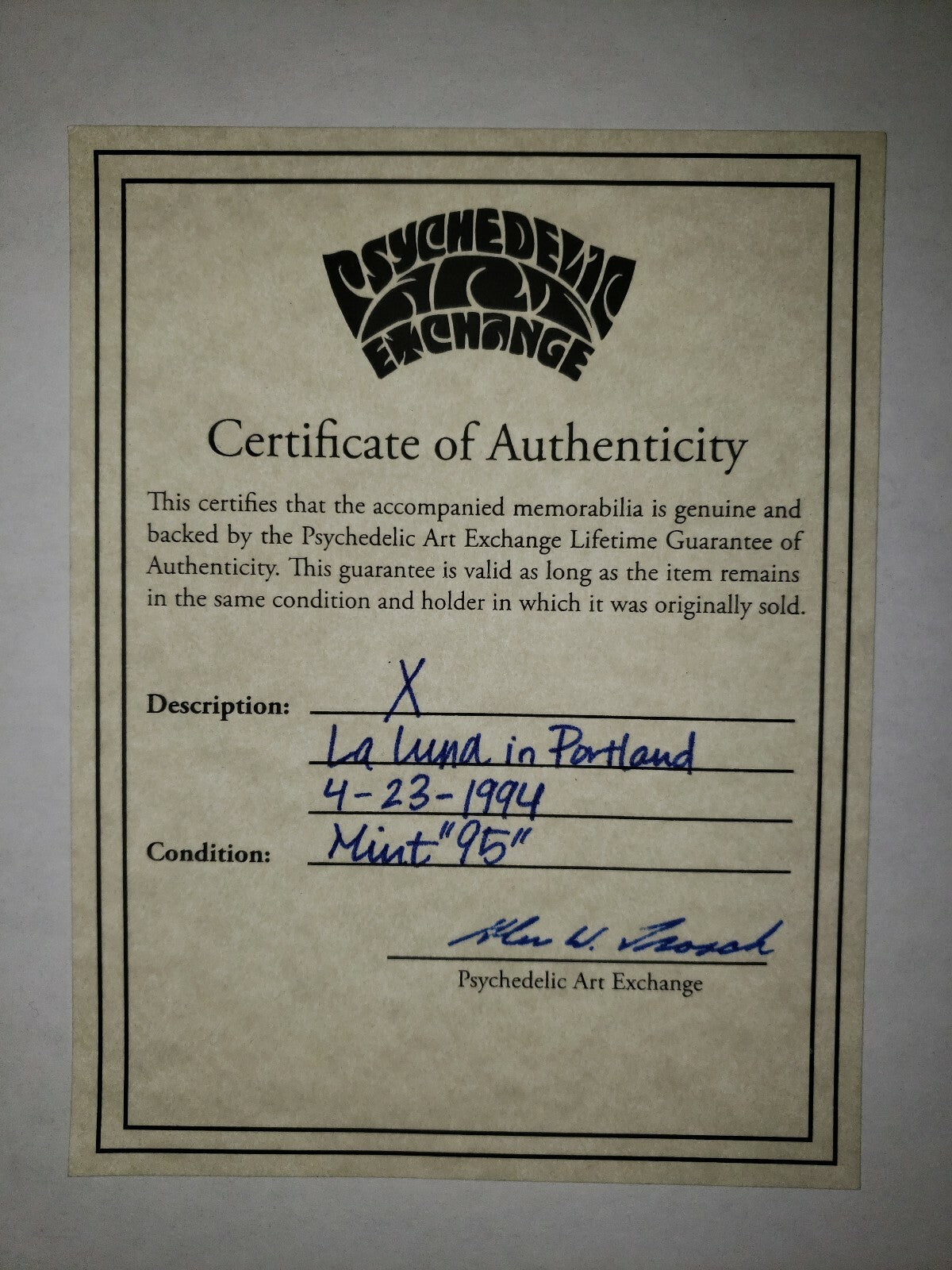 Band "X" La Luna- Portland, OR. 4/23/1994 Concert Poster Hand Bill