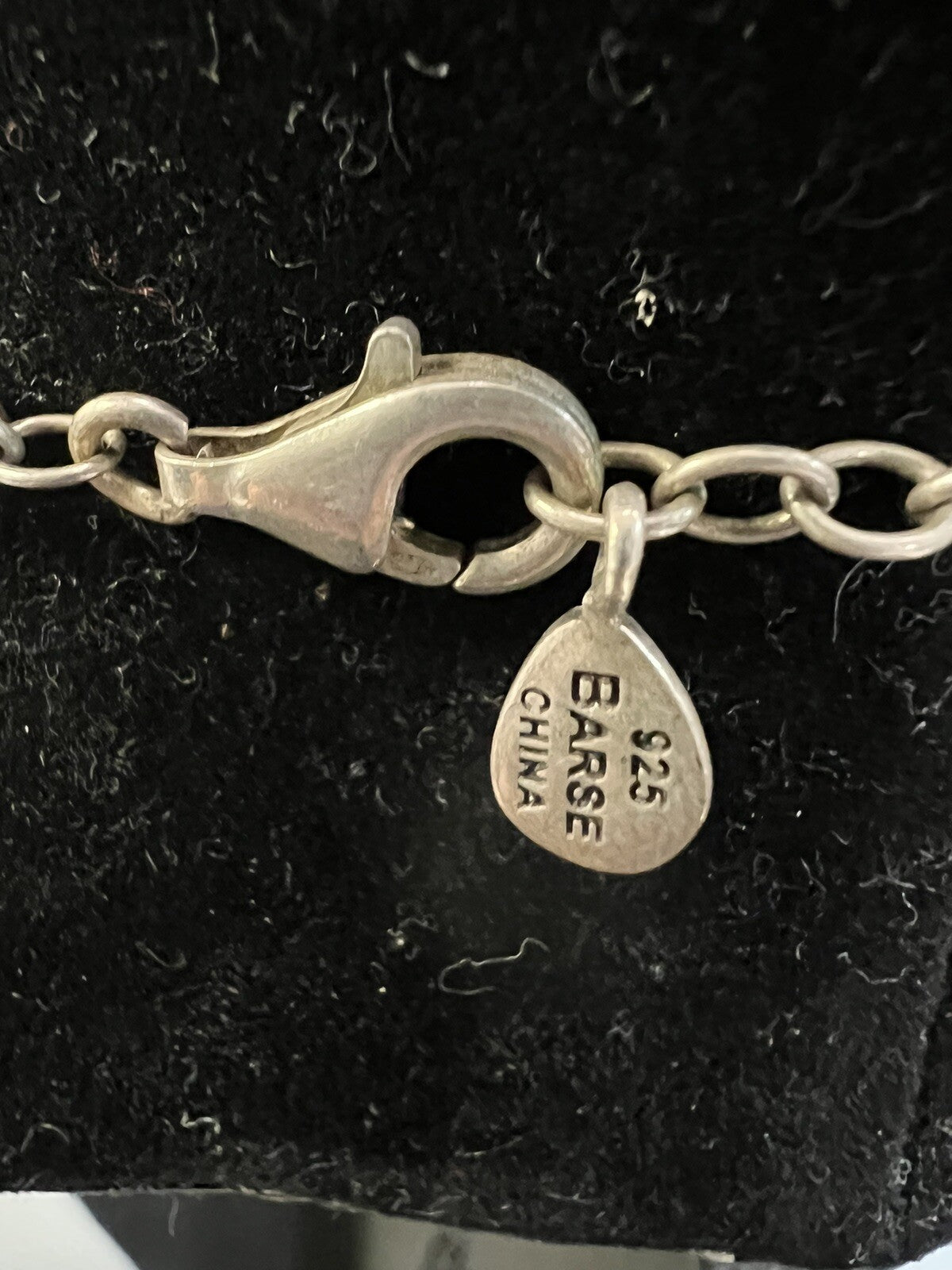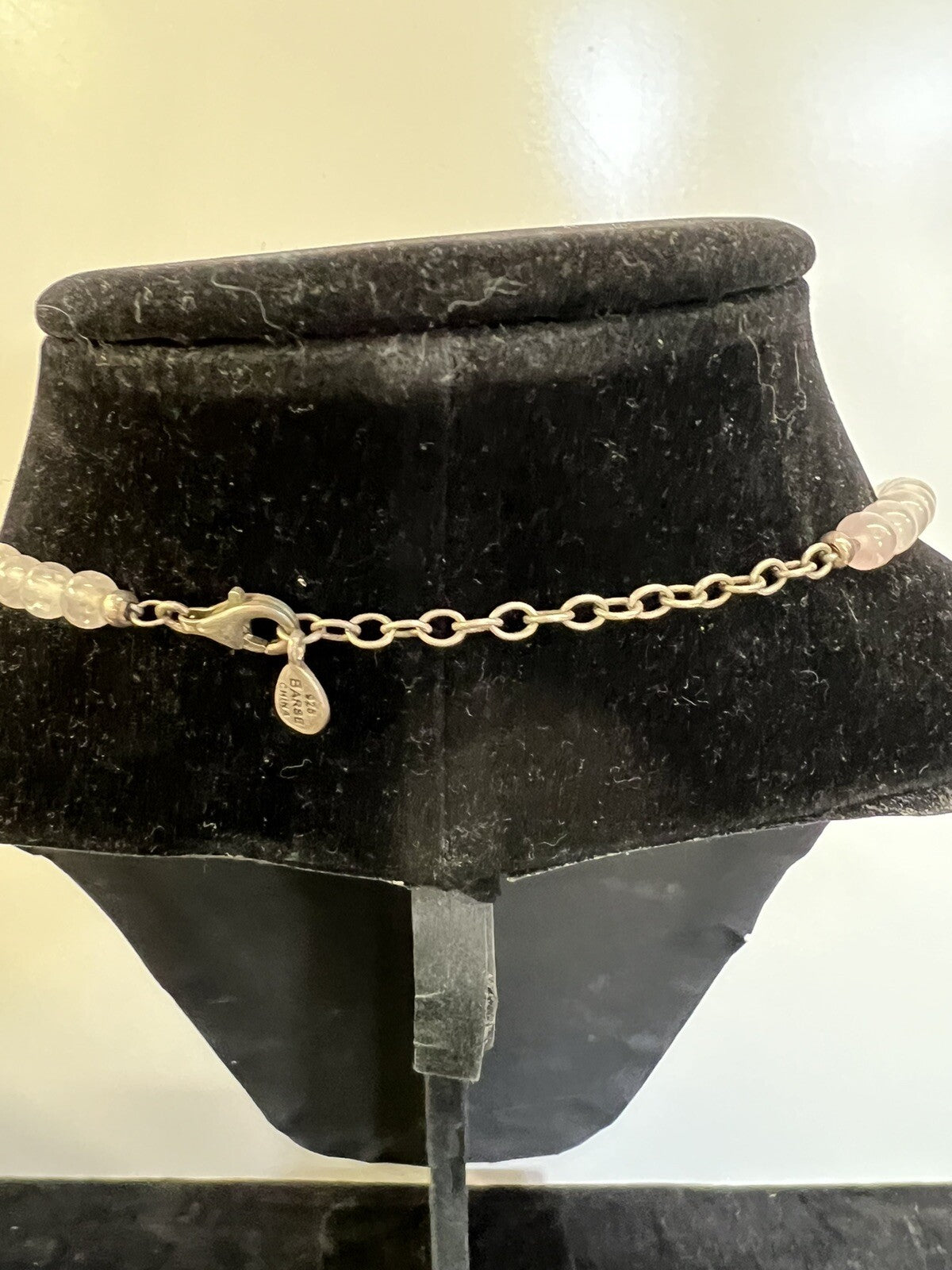 Barse Sterling Silver 925 Pink Sliced 17 Agate Slab Necklace with rose quartz beads.
