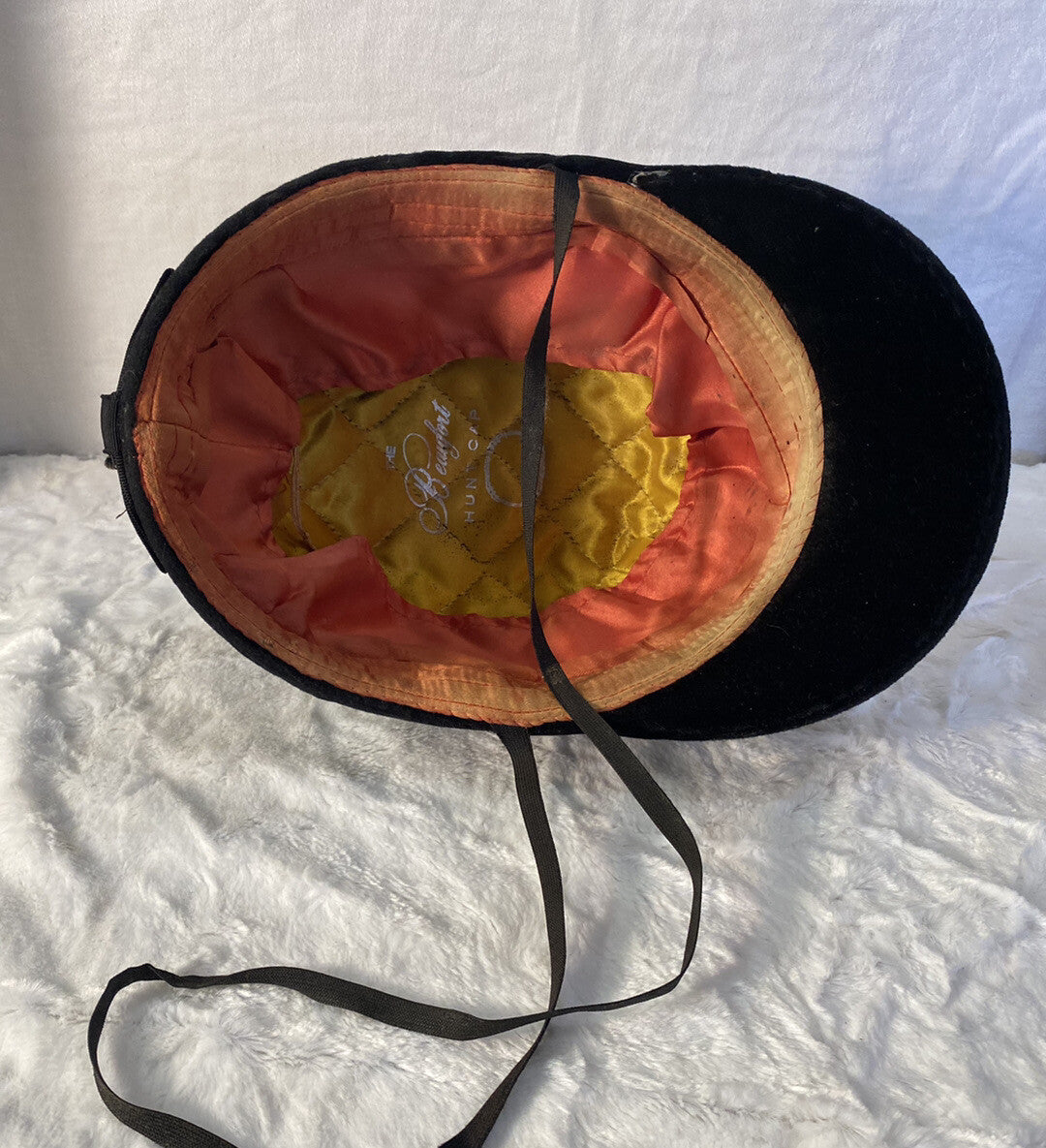 Beaufort Equestrian Hunt Cap Black Velour Horse Riding Helmet Vintage England