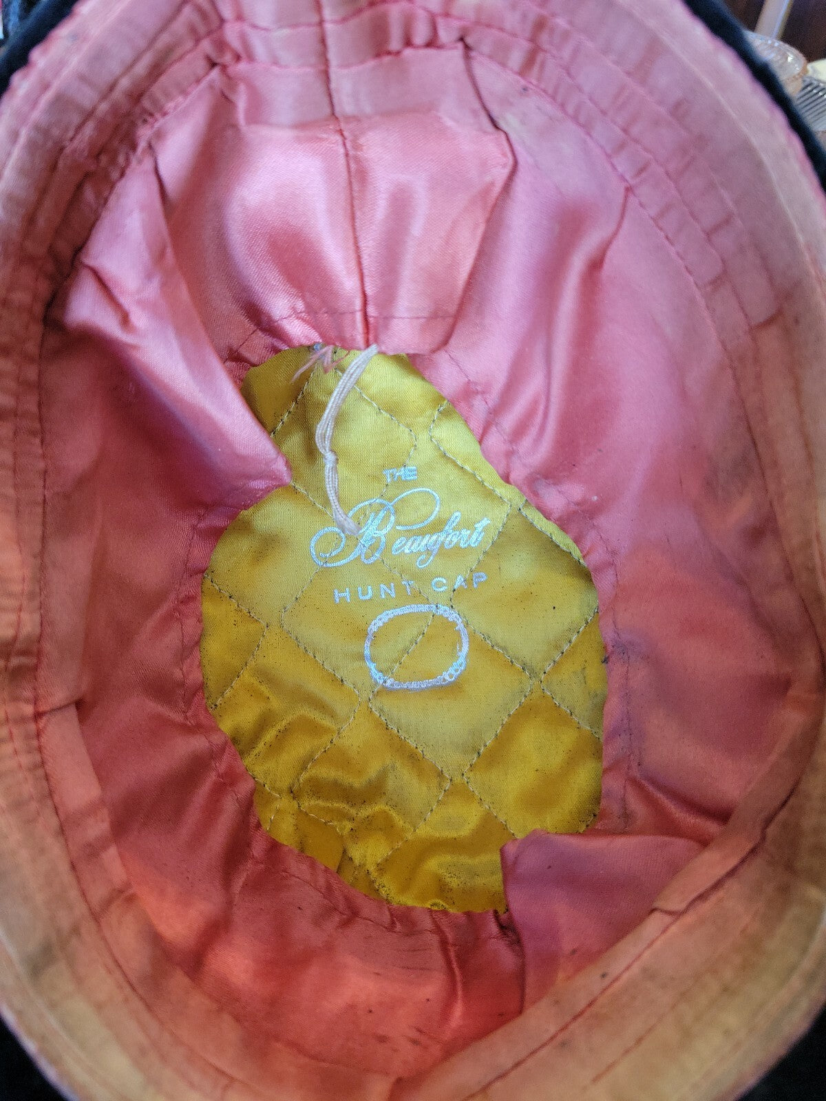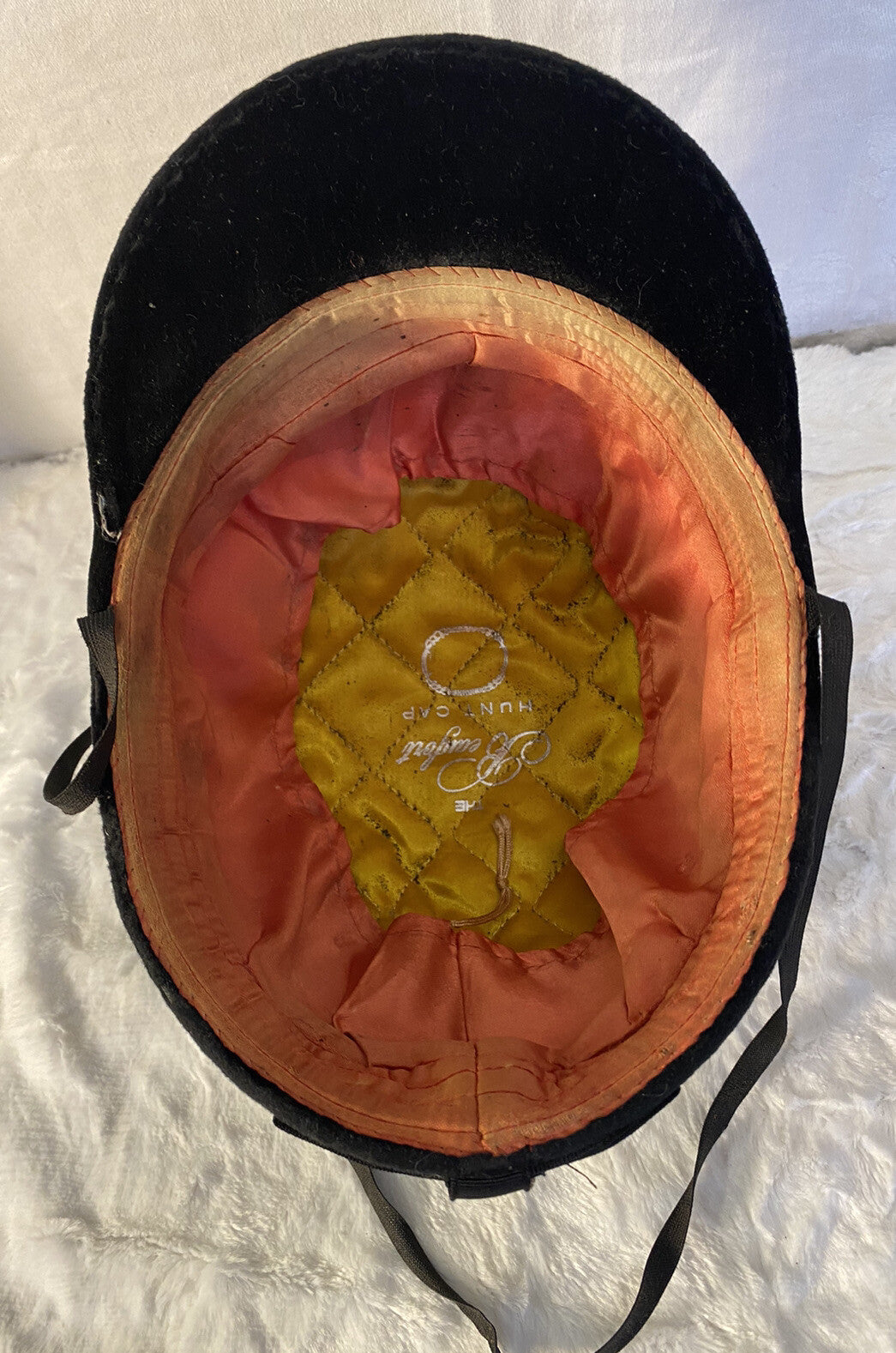 Beaufort Equestrian Hunt Cap Black Velour Horse Riding Helmet Vintage England.