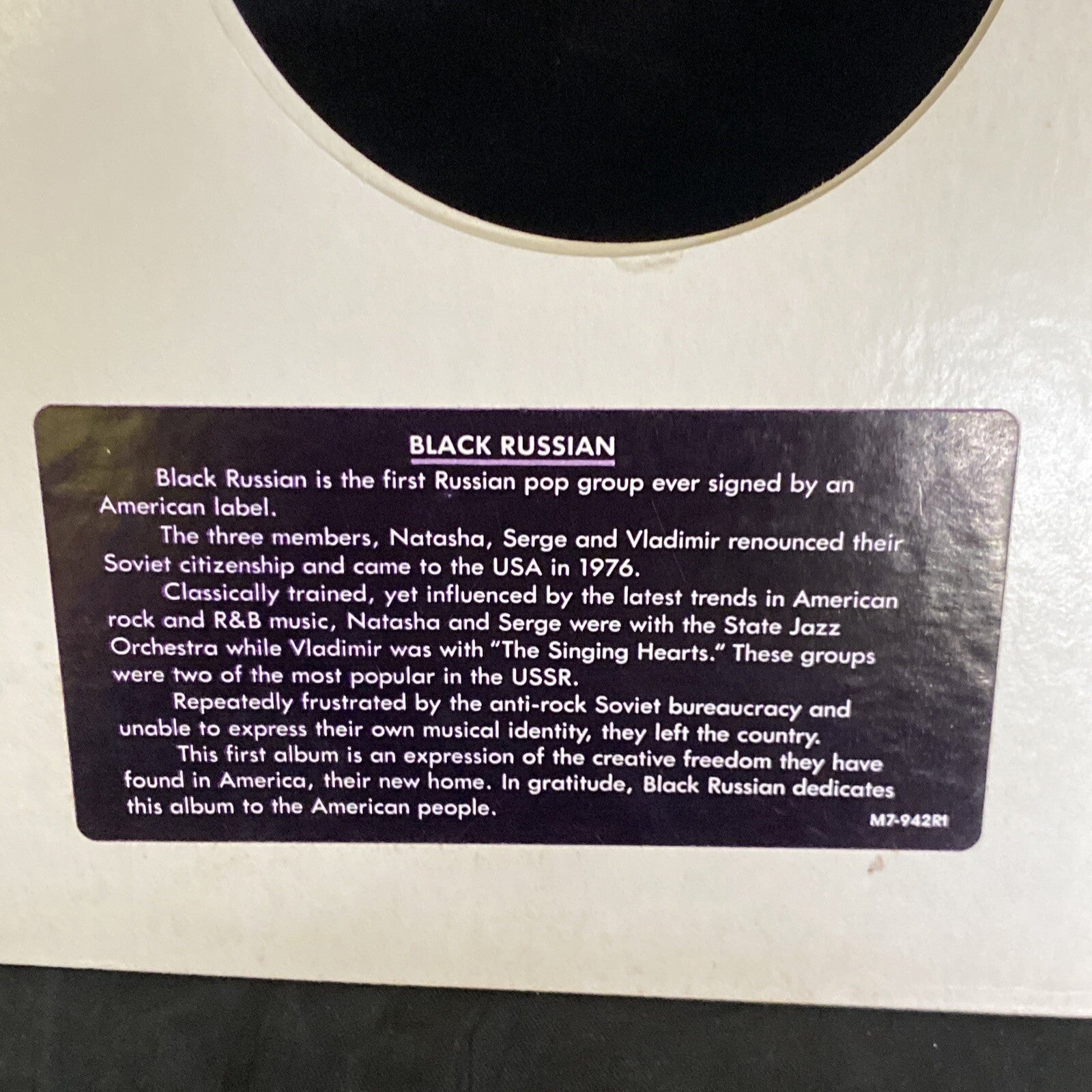 This vinyl record features the music of BLACK RUSSIAN and was released by Motown in 1980. The record is a 12" LP and plays at 33 RPM in stereo. The cardboard sleeve is included and the record is in near mint condition. The record label is M7-942R1.