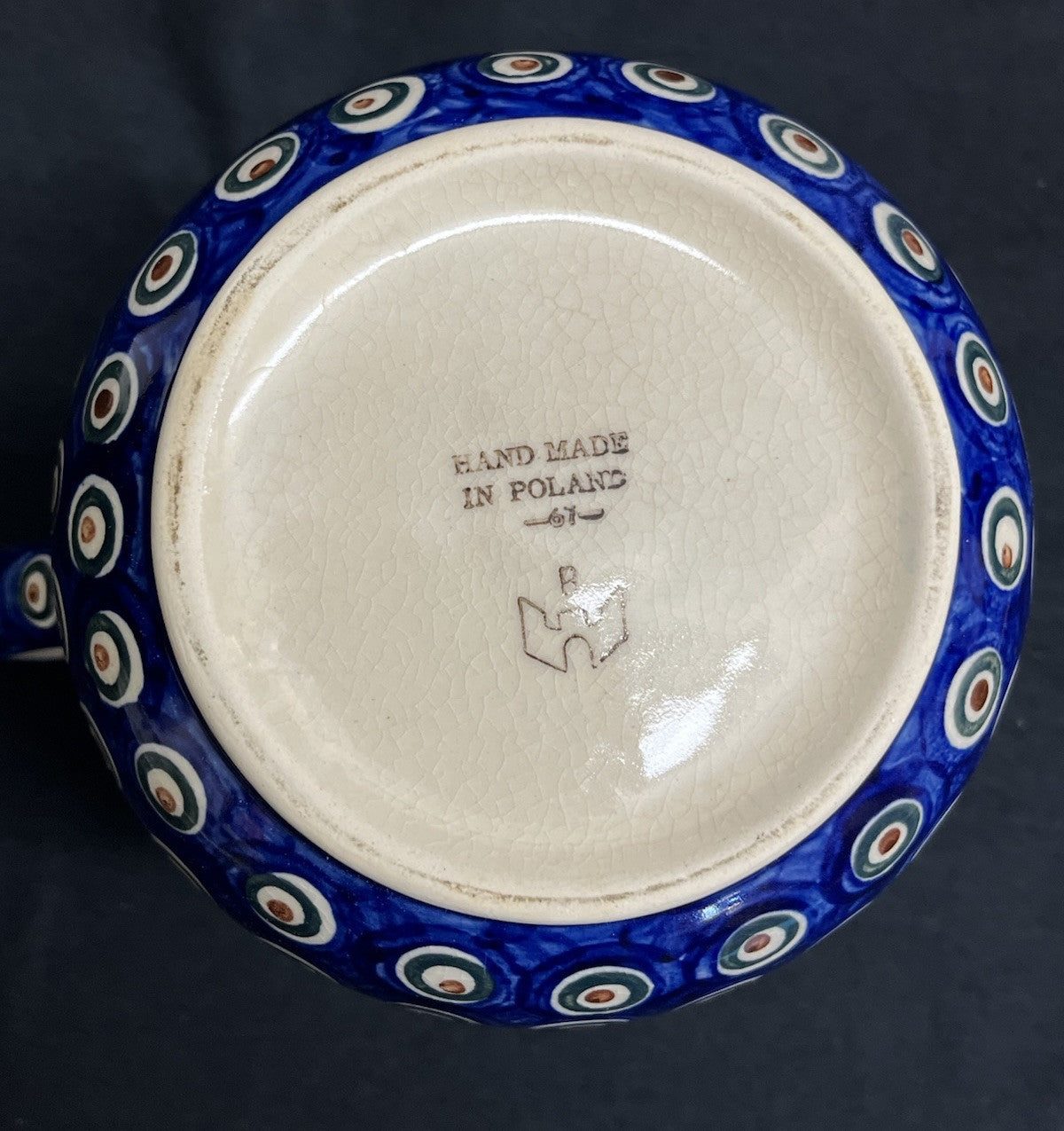 Boleslawiec Polish Pottery 56 oz Pitcher, Peacock Pattern, 7.5 in