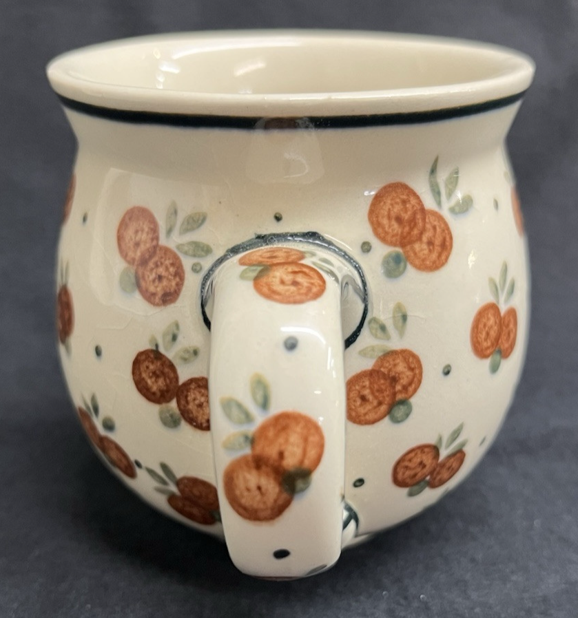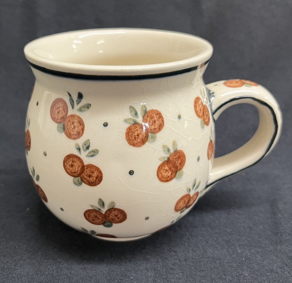 Boleslawiec Polish Pottery Barrel Mug, Wild Cherry Pattern, 3.75 in