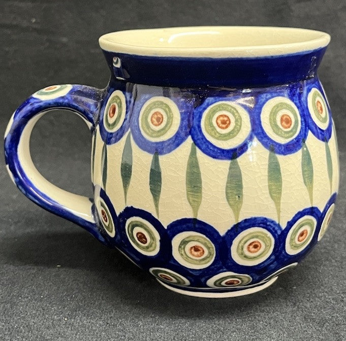 Boleslawiec Polish Pottery Belly Mug, Peacock Pattern, 3.75 in, 6 mugs avail