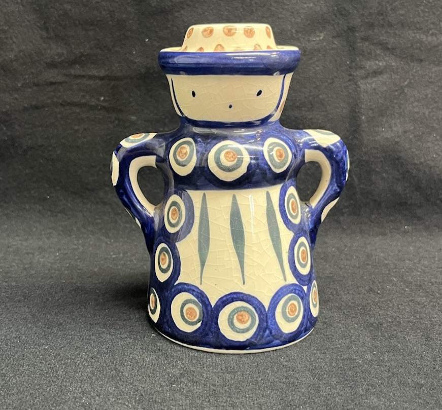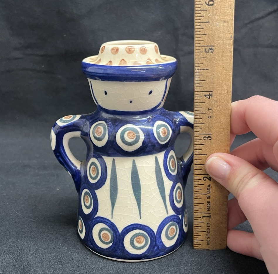 Boleslawiec Polish Pottery Lady Candle Holder, Peacock Pattern, 5.25 in