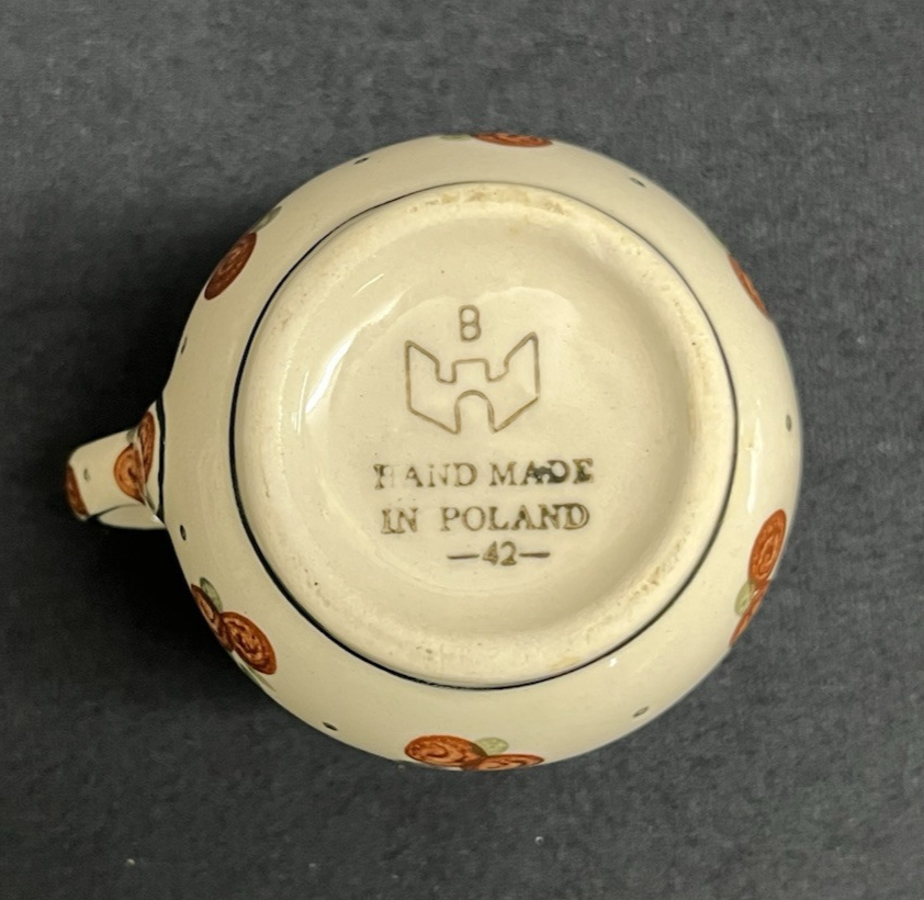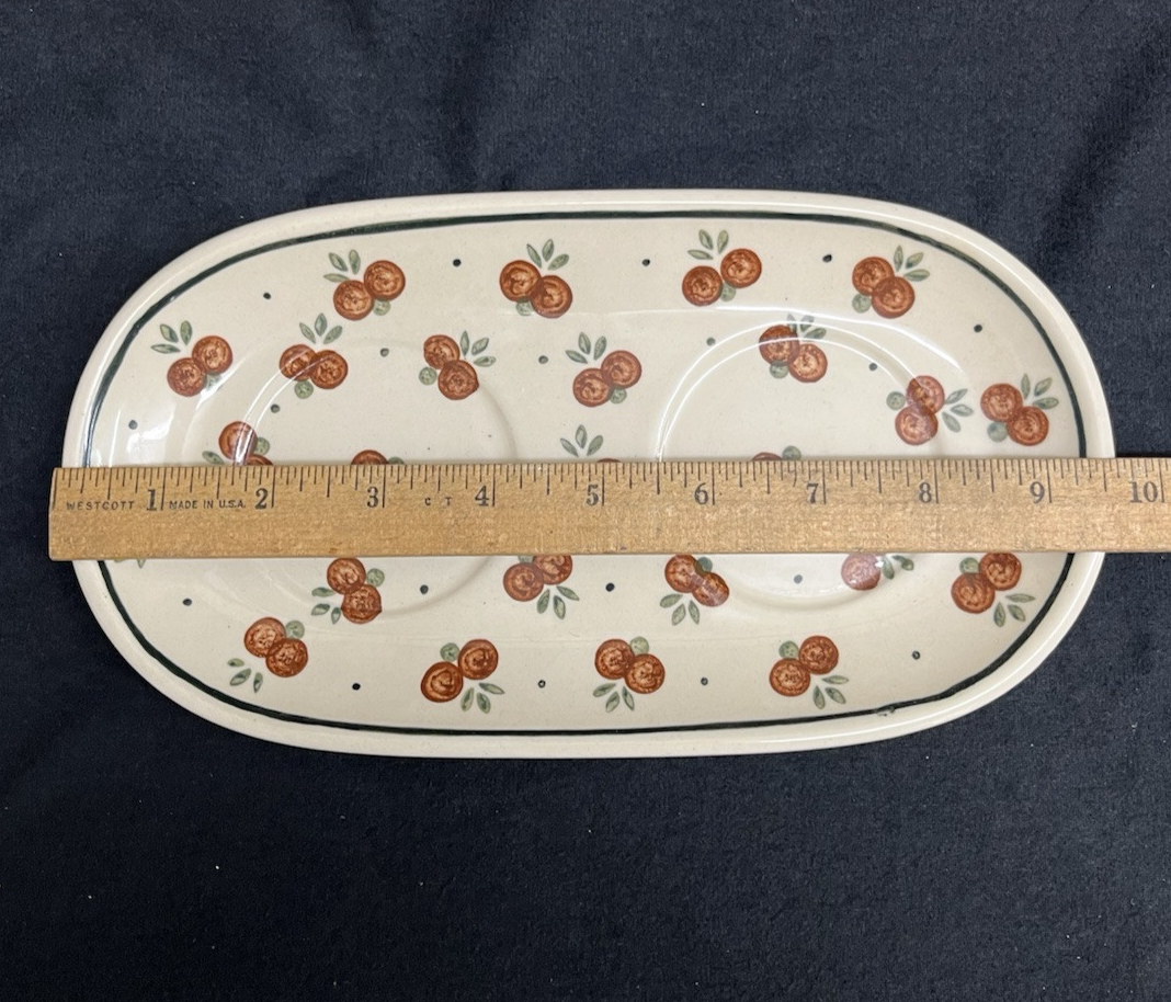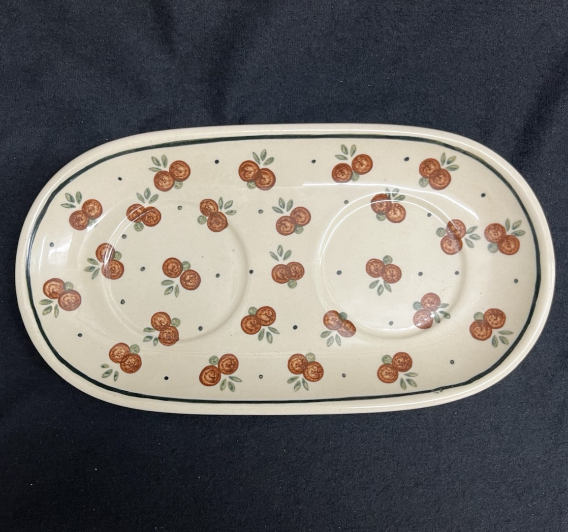 Boleslawiec Polish Pottery Sugar Bowl and Creamer Set w/ Tray, Wild Cherry