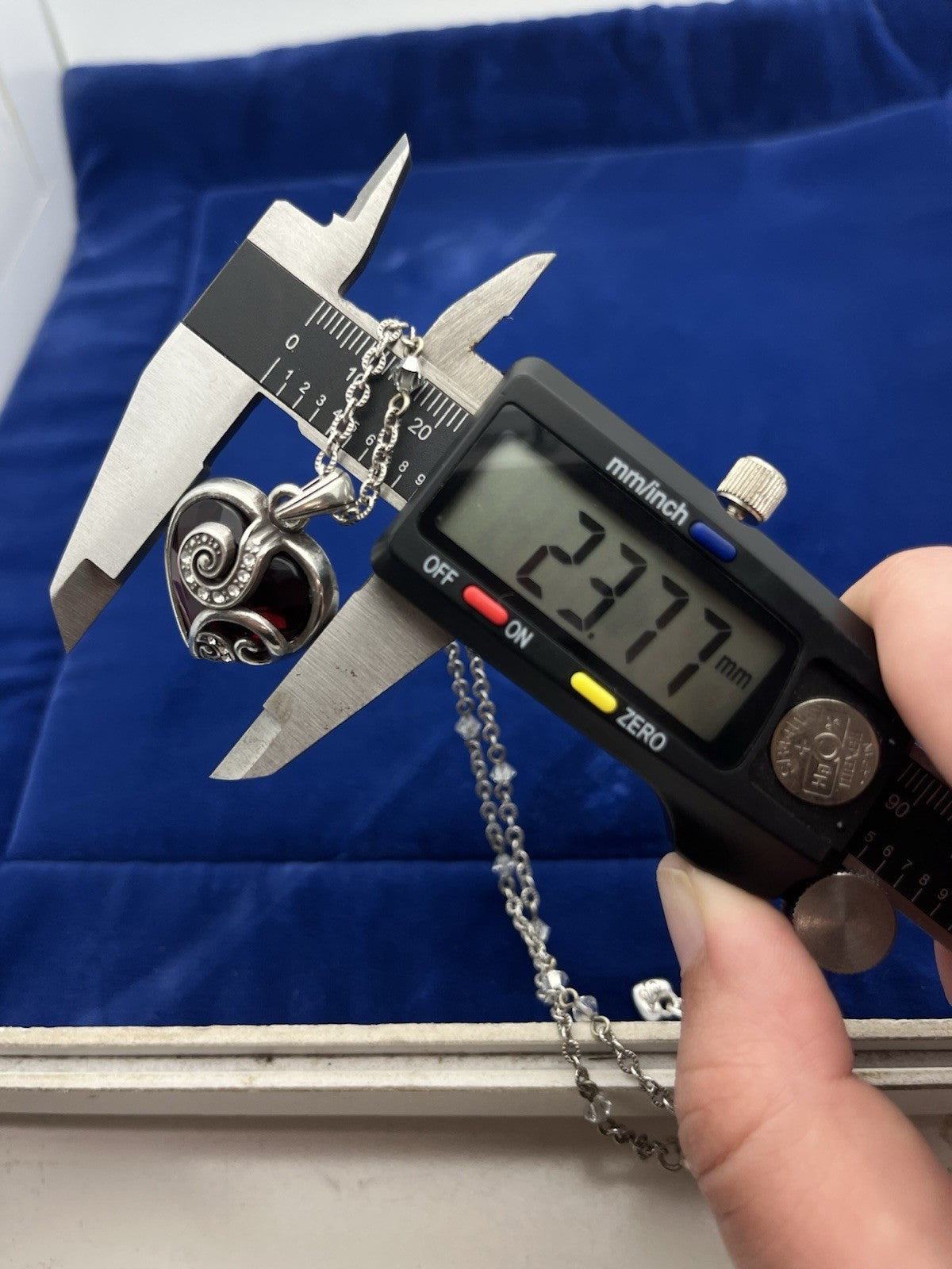 The Brighton Retired Cupid's Love Silver Tone Red Heart Necklace is a beautiful pendant necklace featuring a heart-shaped pendant in a stunning red color. The necklace is silver plated and has a lobster closure for easy wearing. With a necklace length of 18.5 inches, this piece of jewelry exudes a style that is perfect for those who love romantic-themed accessories. The heart-shaped pendant and red color make it a perfect gift for Valentine's Day or a special anniversary celebration.