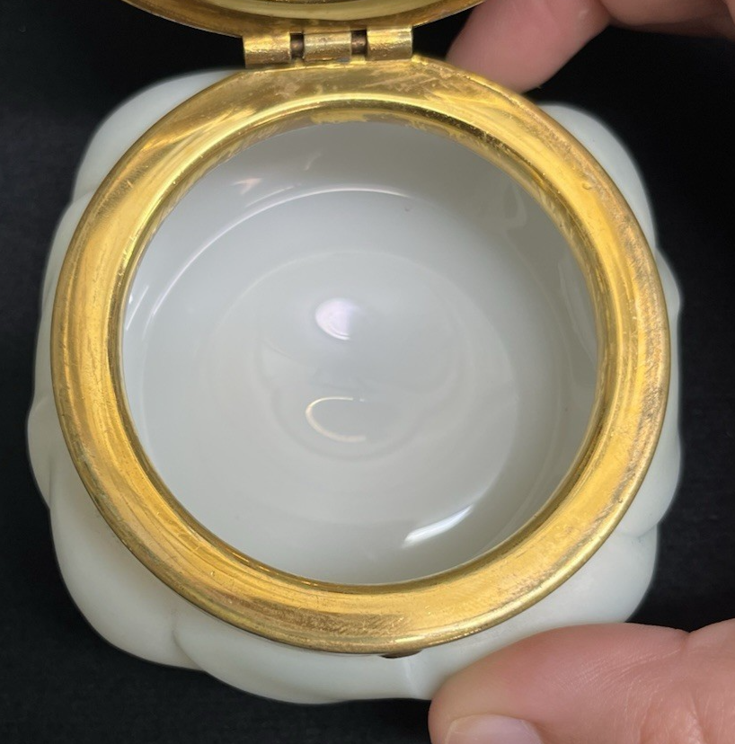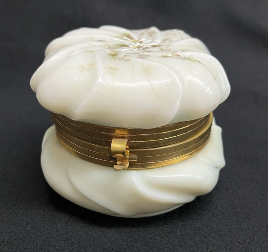 C.F. Monroe Co. Wave Crest Hand Painted Daisies Opal Glass Dresser Box
